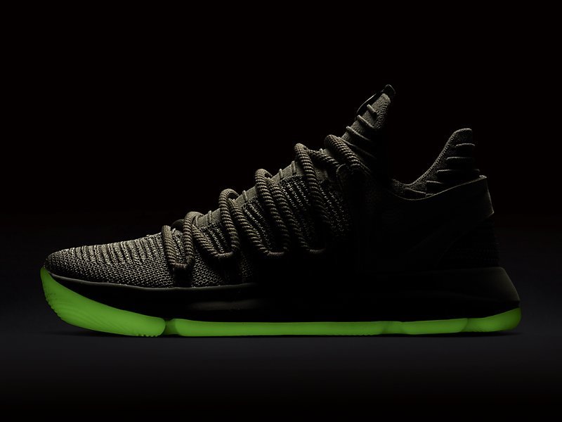 @sinshouhin_com提前曝光新配色Nike Zoom KD10,可以看到配色上采用军绿色覆盖鞋面和中底,大底选择了夜光材质水晶底。不知这款硬朗的配色是否合你心意呢?