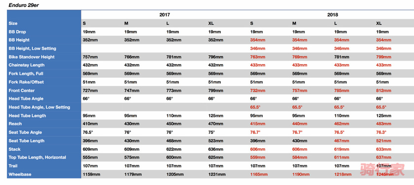 涂装和配置变化习以为常,一年就改的几何成为了今年的亮点,要知道模具是有多么费钱。即便Specialized在几何方面有些保守,但2017款的Enduro也足够适应当下的趋势,可在2018款,竞赛的特性将再一次被放大。