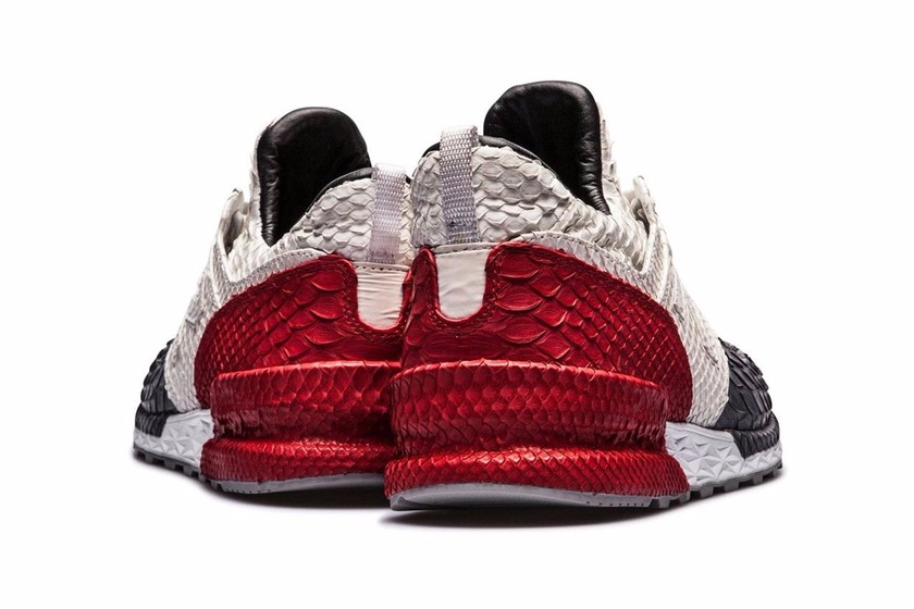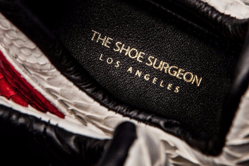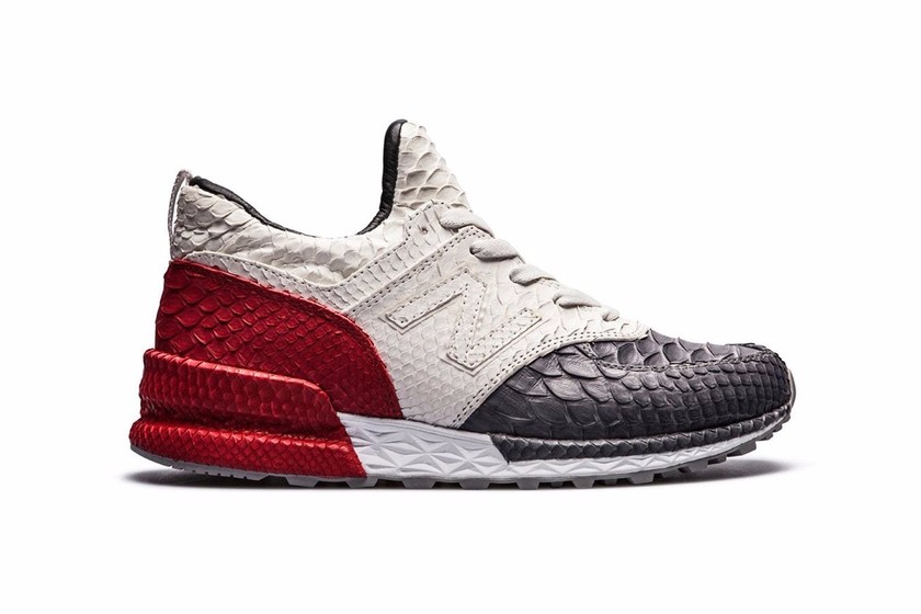 近日著名球鞋定制机构The Shoe Surgeon为New Balance旗下最新推出的热门鞋款574 Sport带来了无尽“奢华”的定制作品。鞋面选用了The Shoe Surgeon主打的蟒蛇皮元素,并分别以黑、白、红的三色组合的醒目设计呈现,鞋垫上还以烫金的方式呈现了The Shoe Surgeon字样与骷髅头LOGO,令其抢眼程度更上一层。不过既然是定制作品又尽显奢华,相信价格也不是一般人可以承受的。