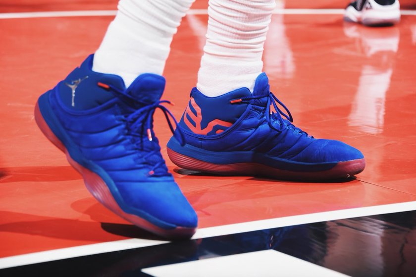 而格里芬脚下所穿的便是这款快船队配色的Jordan Super.Fly 2017 PE。