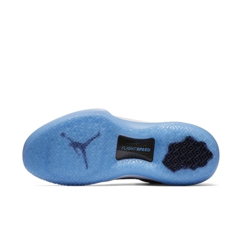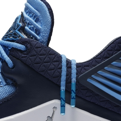 除了经典的北卡蓝元素外,鞋款还将用海军蓝和白色加持,Jumpman Logo上则将使用银色渲染。