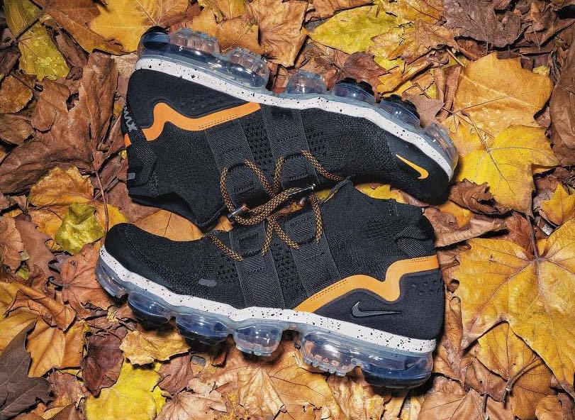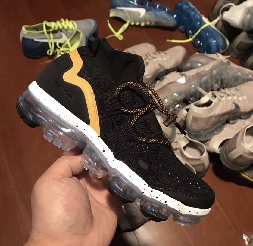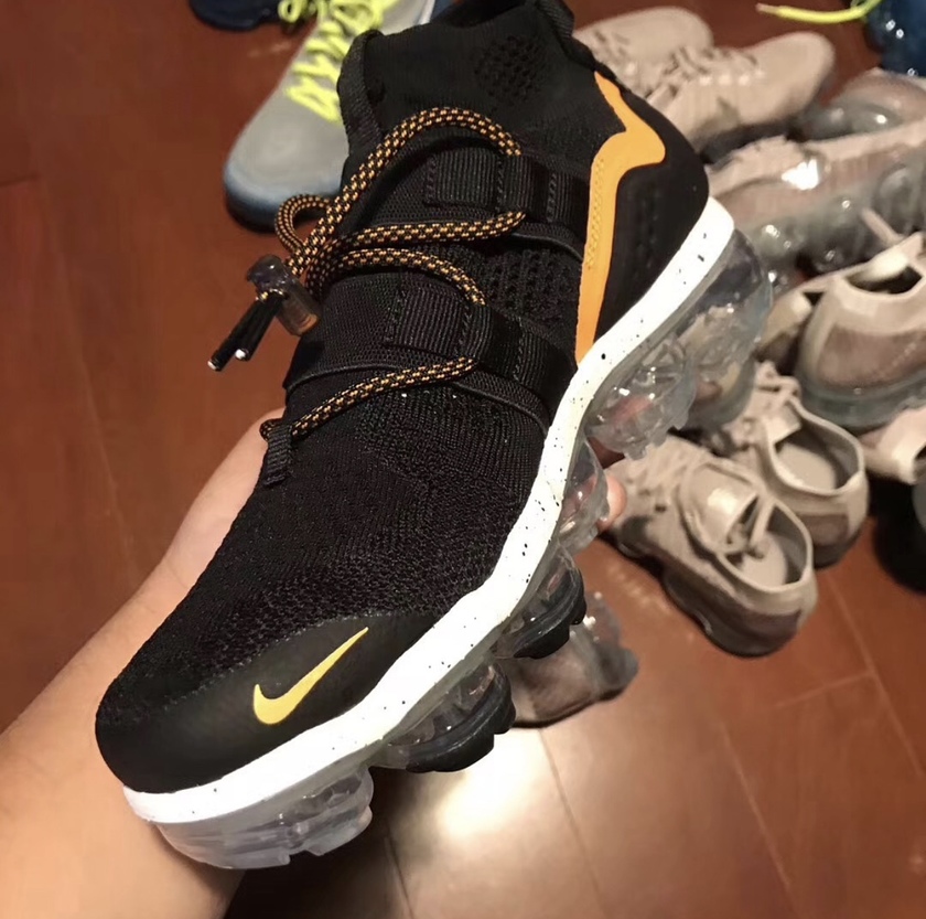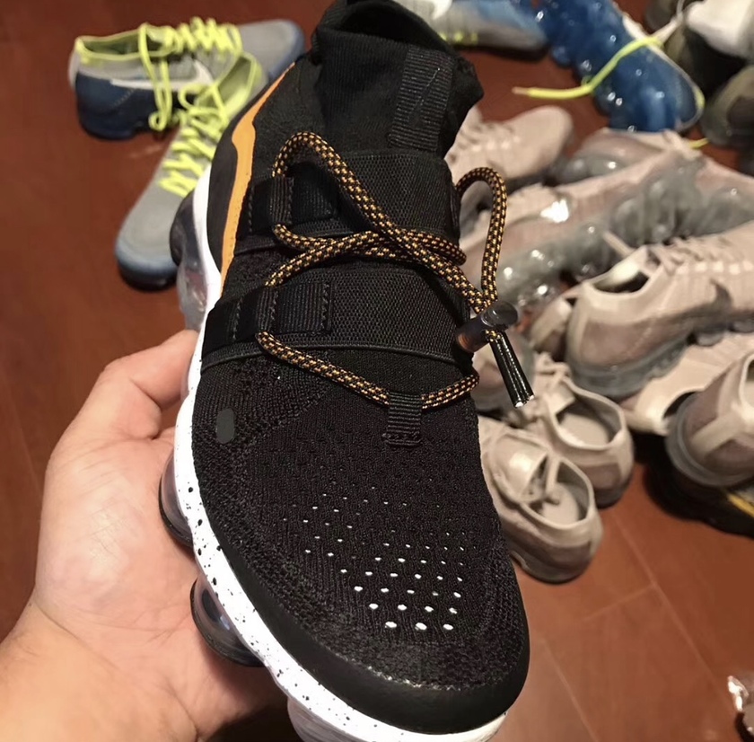 看来除了两种 Laceless 版本外,Nike 当红革新跑鞋 Air VaporMax 还将继续迎来变奏升级。球鞋摄影师 @sneakerprophet_ 早前就在 Instagram 上率先揭开了 Air VaporMax 全新中筒版本的面纱。从图中可看到,Air VaporMax 的 Flyknit 鞋身轮廓得到延伸,原本两侧的 Swoosh 被迷你化分散在前后,并融入颇具户外感的鞋带系统、后跟对比色饰边及编织拉环等崭新细节,除此之外鞋身与 VaporMax 气垫之间还以一层带有泼墨点缀的白色中底作衔接。