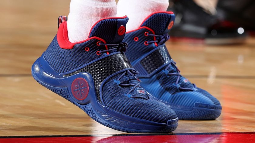 在正在进行的骑士VS火箭的比赛中,骑士球员Dwyane Wade上脚了一款向即将到来的老兵节致意的 "Veterans Day"配色Li-Ning Way of Wade 6。