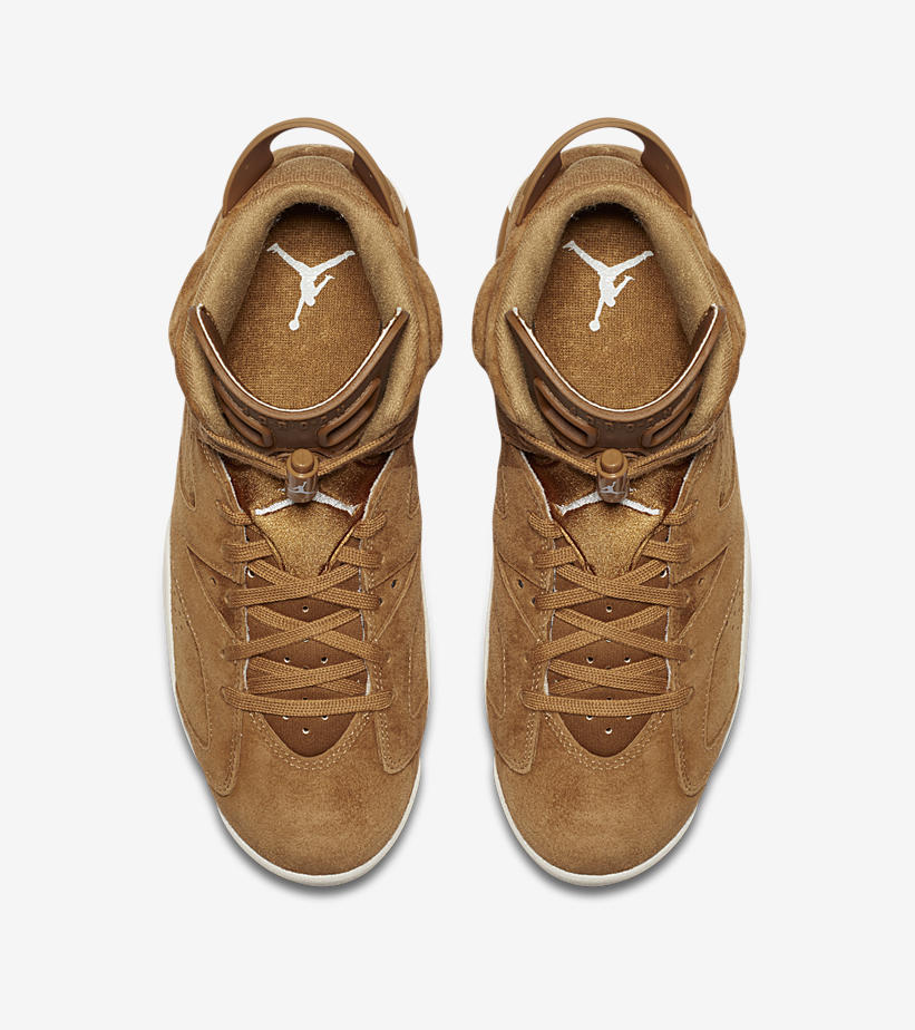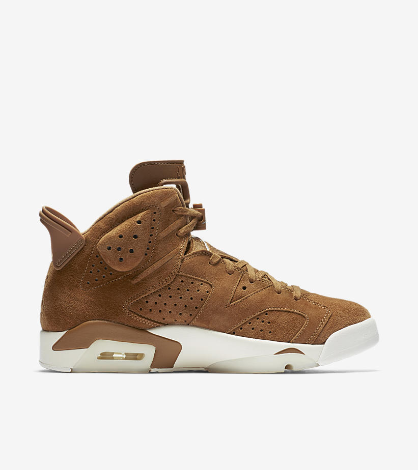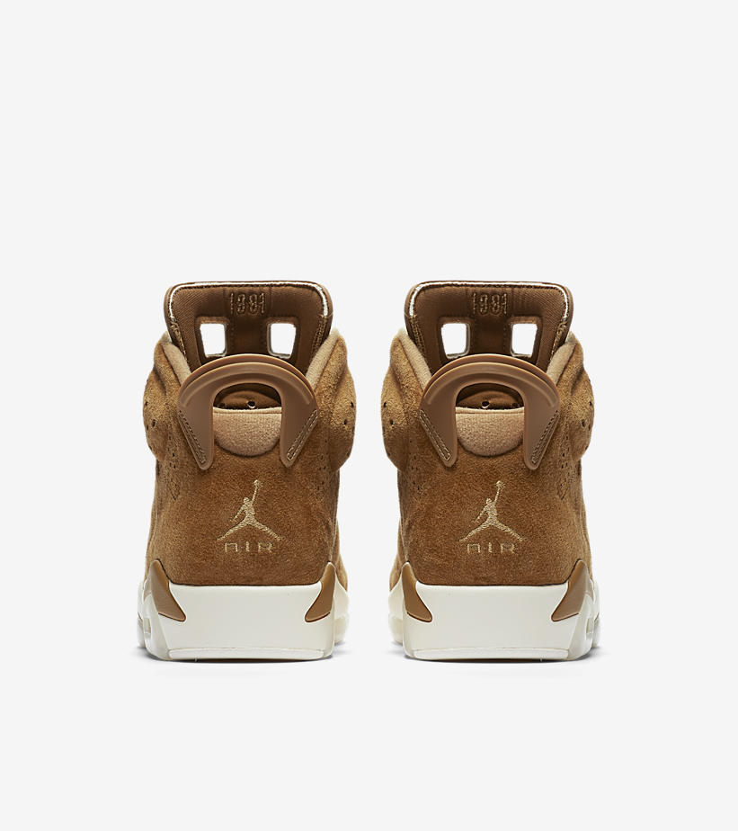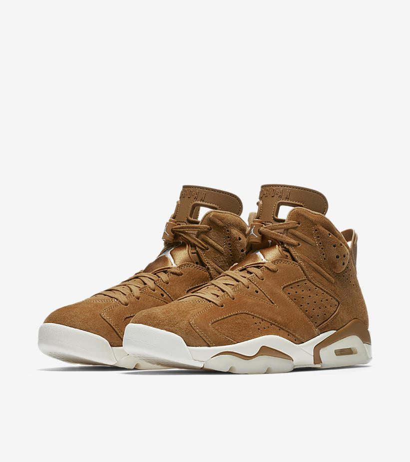 全新Air Jordan 6“Wheat”将鞋面光滑皮革替换为翻毛皮设计,为利落元年款型增添几分柔和质感。麦金元素为设计赋予浓郁季节色彩,而白色Jumpman Logo则在赛场中为你塑就瞩目风范。