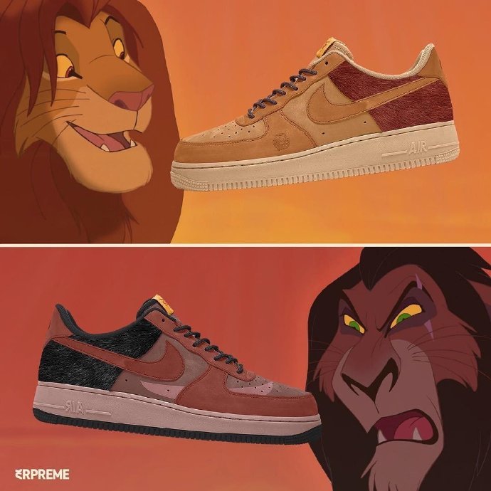 近日ins账户@srpreme晒出了一些以动画片为灵感的配色畅想,将狮子王、玩具总动员、皮卡丘、绿毛怪格林奇等我们熟知的动画形象融入鞋款之上,还是比较形象的,你喜欢这样的设计吗?