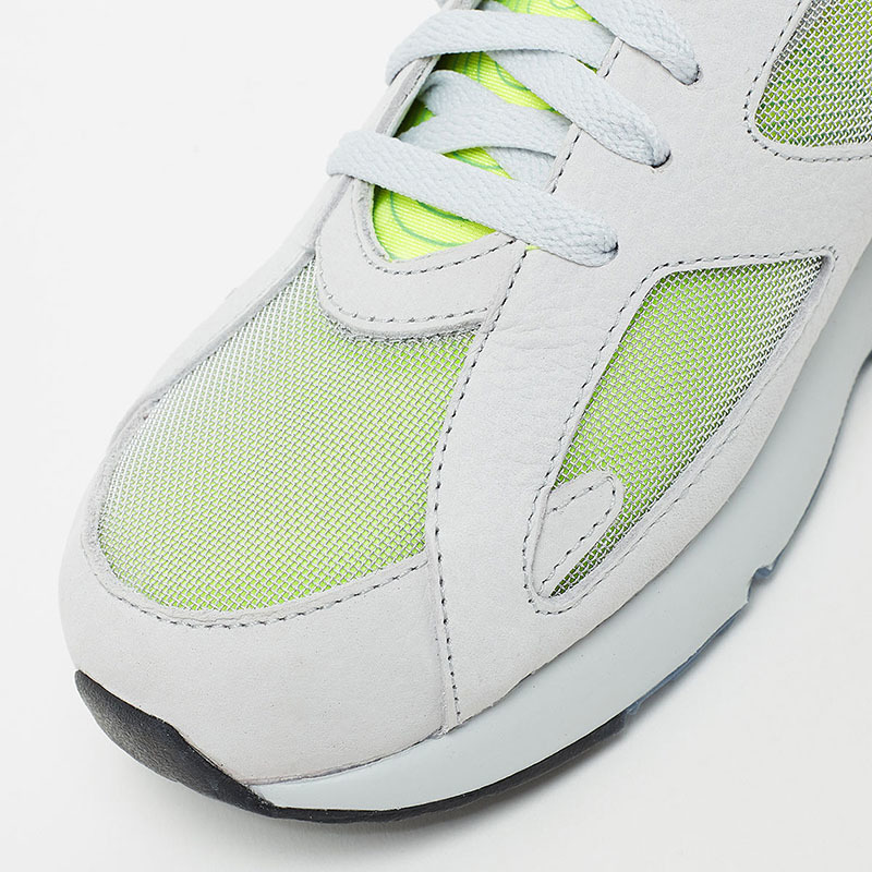 鞋面采用了透明网布拼接皮革材质,荧光黄的配色若隐若现十分养眼,另外后跟配合粉色点缀,潮流感满满。另外在鞋底我们还能看到“Unity” 与 “Freedom”的字样展现了德国柏林墙推倒后的社会新局面。这款配色将于3月26日于于柏林指定店铺出售,3月30日陆续在欧洲地区上架。国内的具体发售信息我们将持续关注。