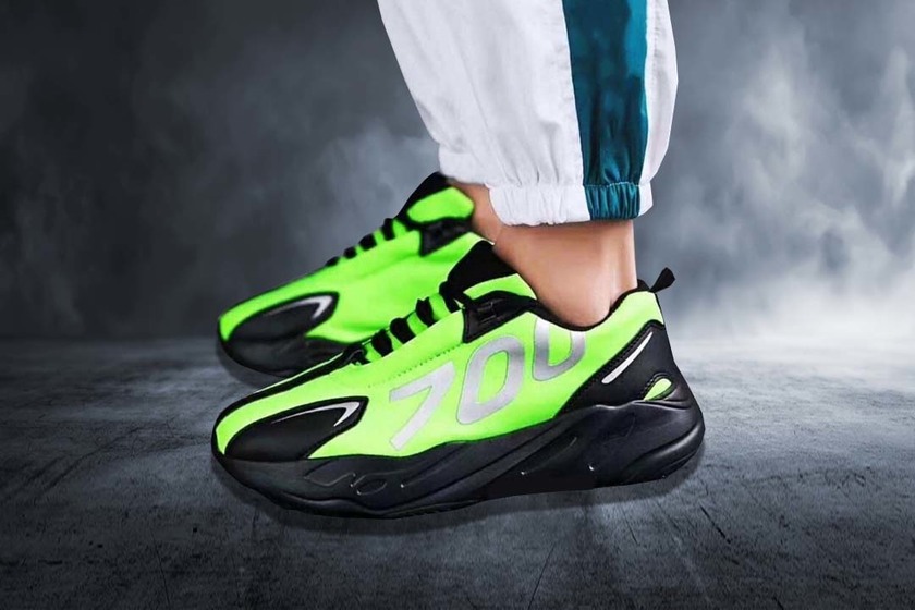 除了海盐一类的清新色系以外,随后Yeezy 700又推出了V2鞋型,并且发售了不少例如“Geode”、“Vanta”这样的深色系风格,填补各类深色系的空白供大家在穿搭中选择。另外Yeezy 700 V2还在鞋身两侧加入了3M反光的设计,并且很好地结合了adidas的三道杠logo,设计时尚感也十分出色。