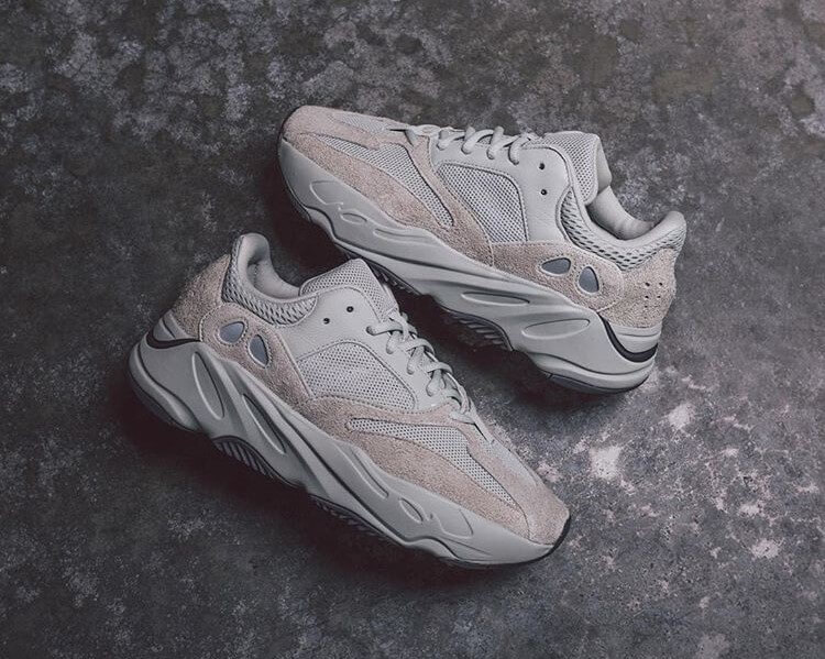 说完了350,再让我们把转向Yeezy 700。同时在2018年年底亮相的鞋款,这双鞋在2019上半年强势出击,在数月内接连更新了数十个配色。其中在2月发售的Yeezy 700海盐配色最为瞩目,这双气质百搭的配色据说是这款鞋型中货量最少的一款。整体鞋身使用多种材质凭借呈现,看似是一种配色却一通过材质来区分形成层次感。这种百搭又简约的设计相当讨喜。