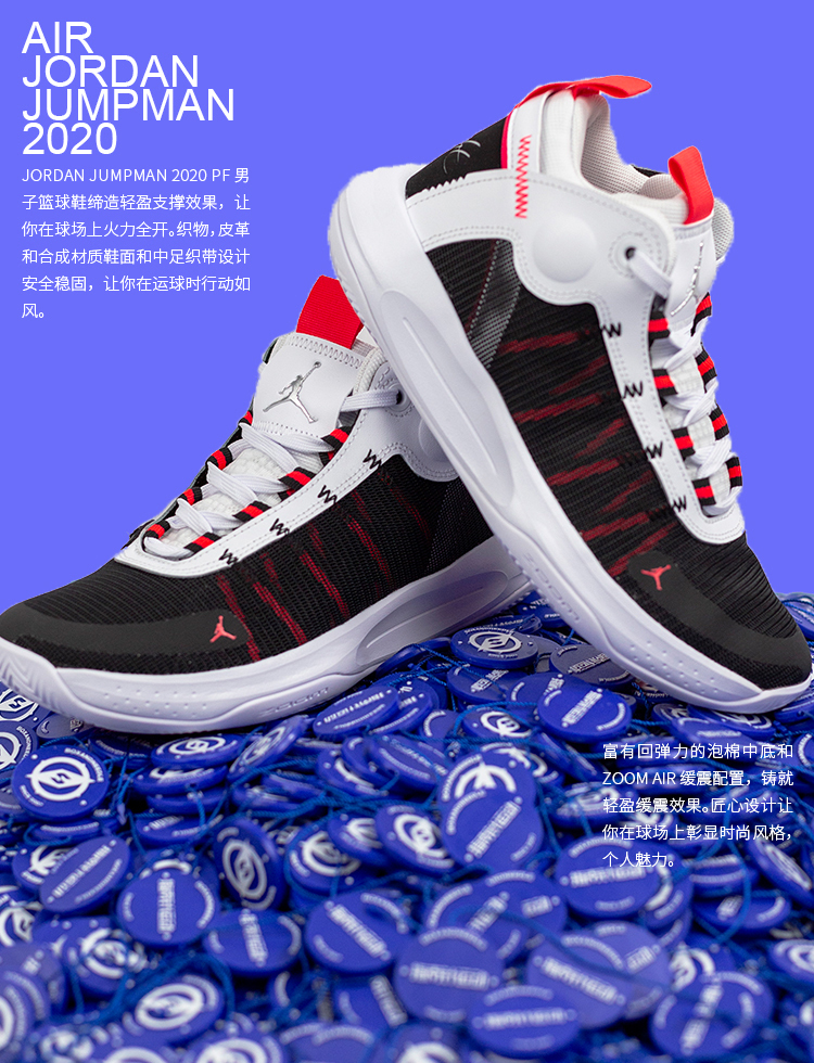 Air Jordan除了每年正代发售其实不乏一些优秀的TEAM款,比如之前上古时代的JORDAN ELITE 1和Air Jordan 2001 Q FIGHT等,即使拿到现在也是极其优秀的实战好鞋,今年最新发售的继承Air Jordan 32与Air Jordan 33前掌的“扑克”大小的ZOOM AIR并以Air Jordan 34外观为基础的Air Jordan2020可以无限接近这一层次的实战好鞋。