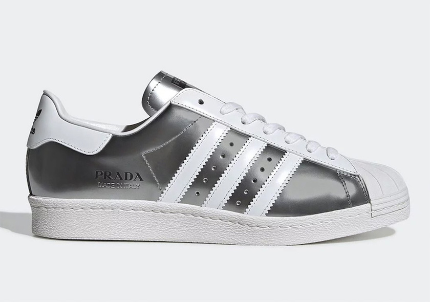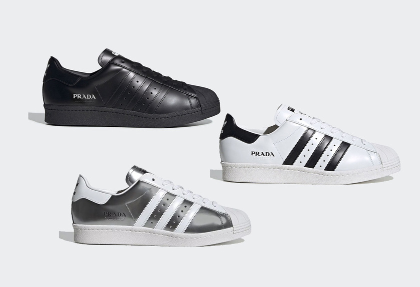 Prada x adidas的联名合作在此之前曝光已经有一点段时间了,在经典的Originals Superstar 鞋款呈现。今天也是正式曝光了全部的三款配色,除了此前的黑白两色之外,还有一款全新银白色亮相。