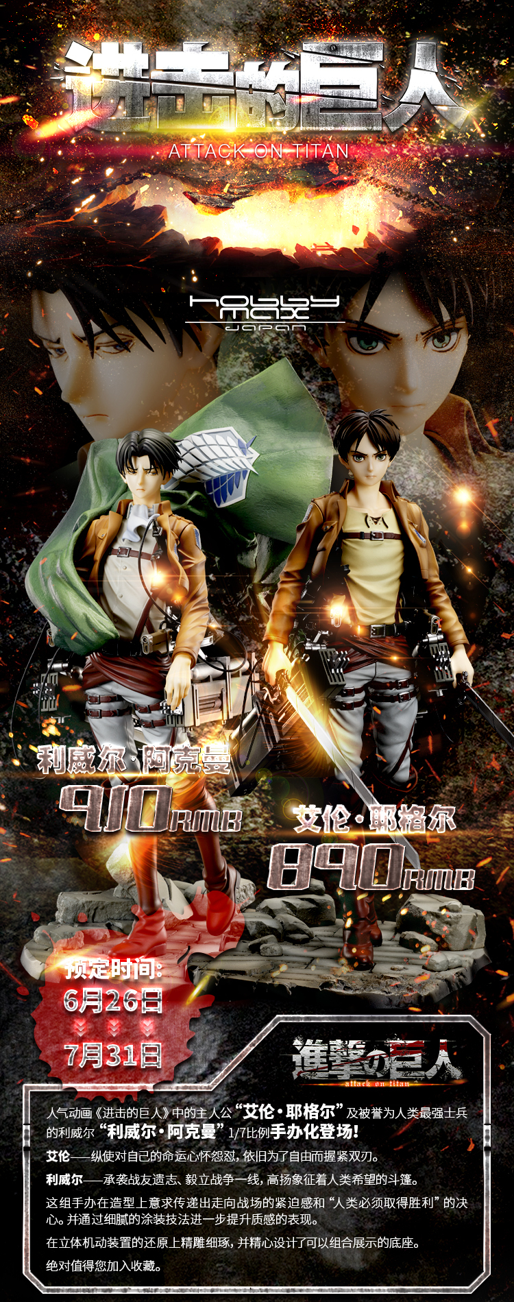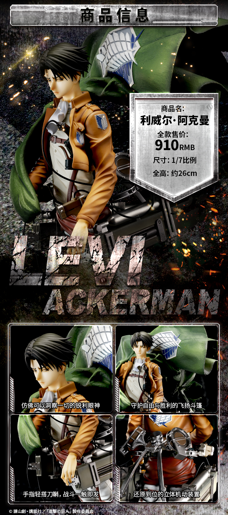 HobbyMax在近期公布了史诗级巨作《进击的巨人》的模型制作,是一款以兵长利威尔为原型打造的模型。设计采用定姿,从服饰到立体机动装置都做了非常精致的完美还原,身后的披风潇洒自如,帅气十足。喜欢的朋友可以关注一下,该作目前正在预定中,售价910元。