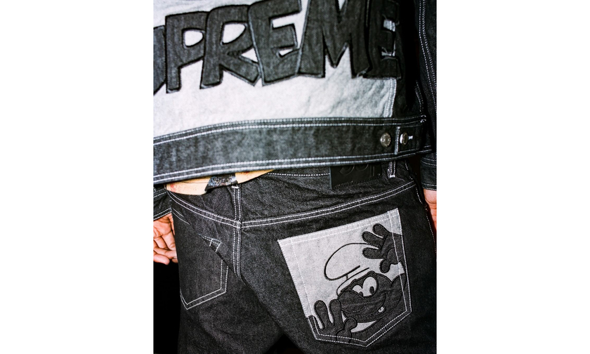 此前发布过预告的《蓝精灵》x Supreme 合作系列,近日由 Supreme 官方正式带来首张细节预览。可以看到这张图片上的是黑色丹宁裤与夹克,蓝精灵卡通形象点缀于口袋部分,又酷又玩味。目前尚未释出更多单品信息,但预计《蓝精灵》x Supreme 除了服装外还会有更多产品登场,我们拭目以待吧。