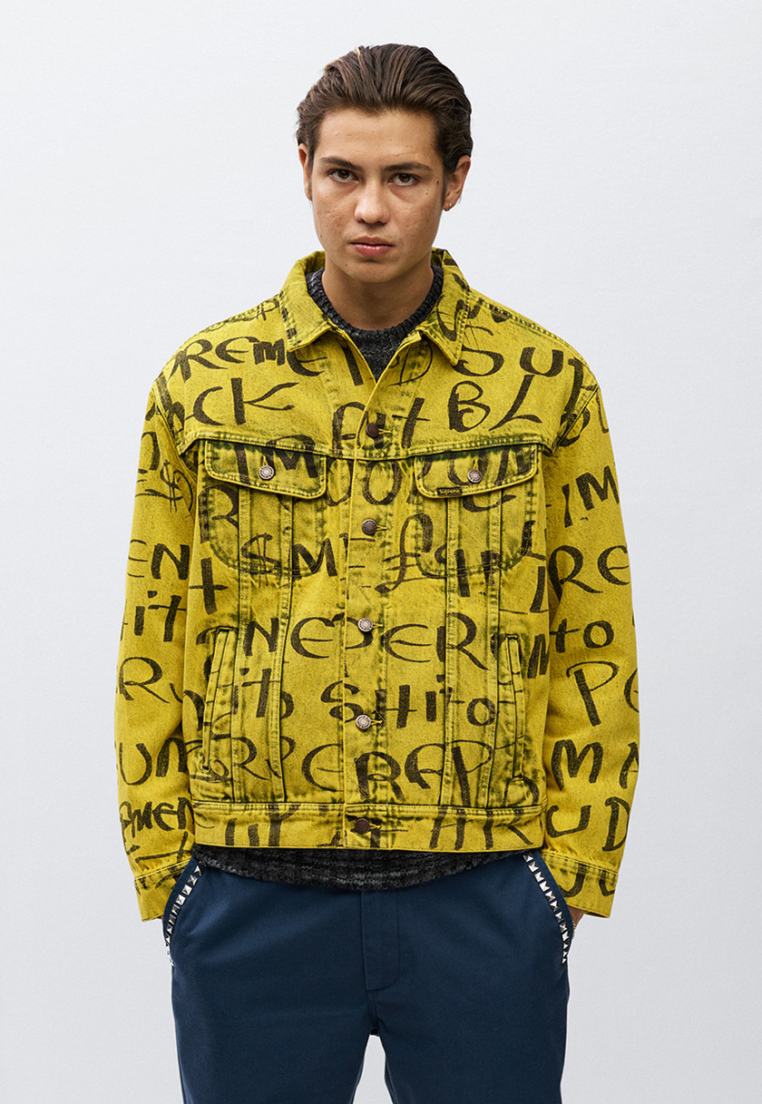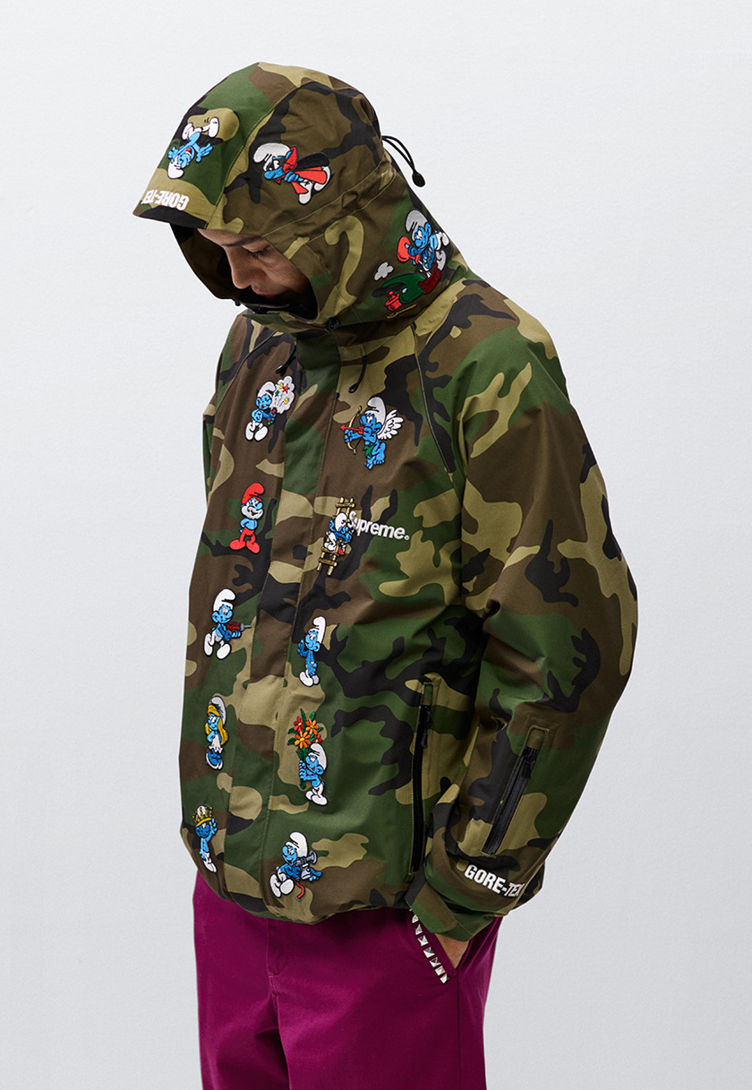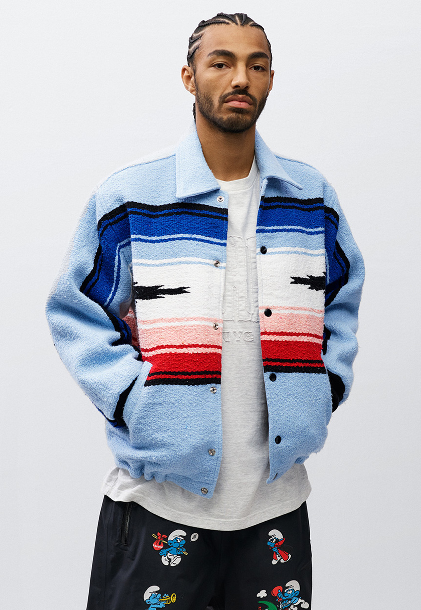 另外,预告中与《蓝精灵》的合作也完整公开了,黑色牛仔夹克与裤子搭配蓝精灵印花,玩味与酷帅并存。