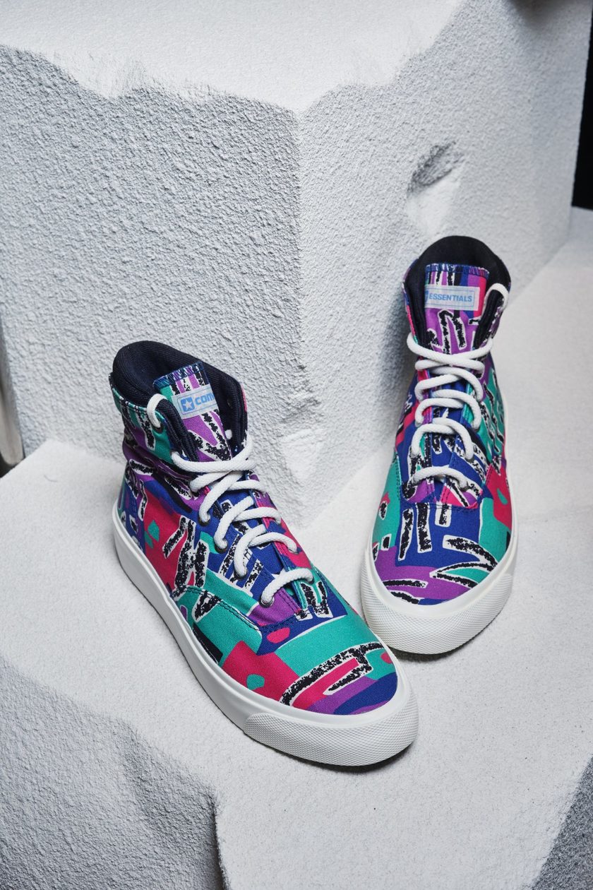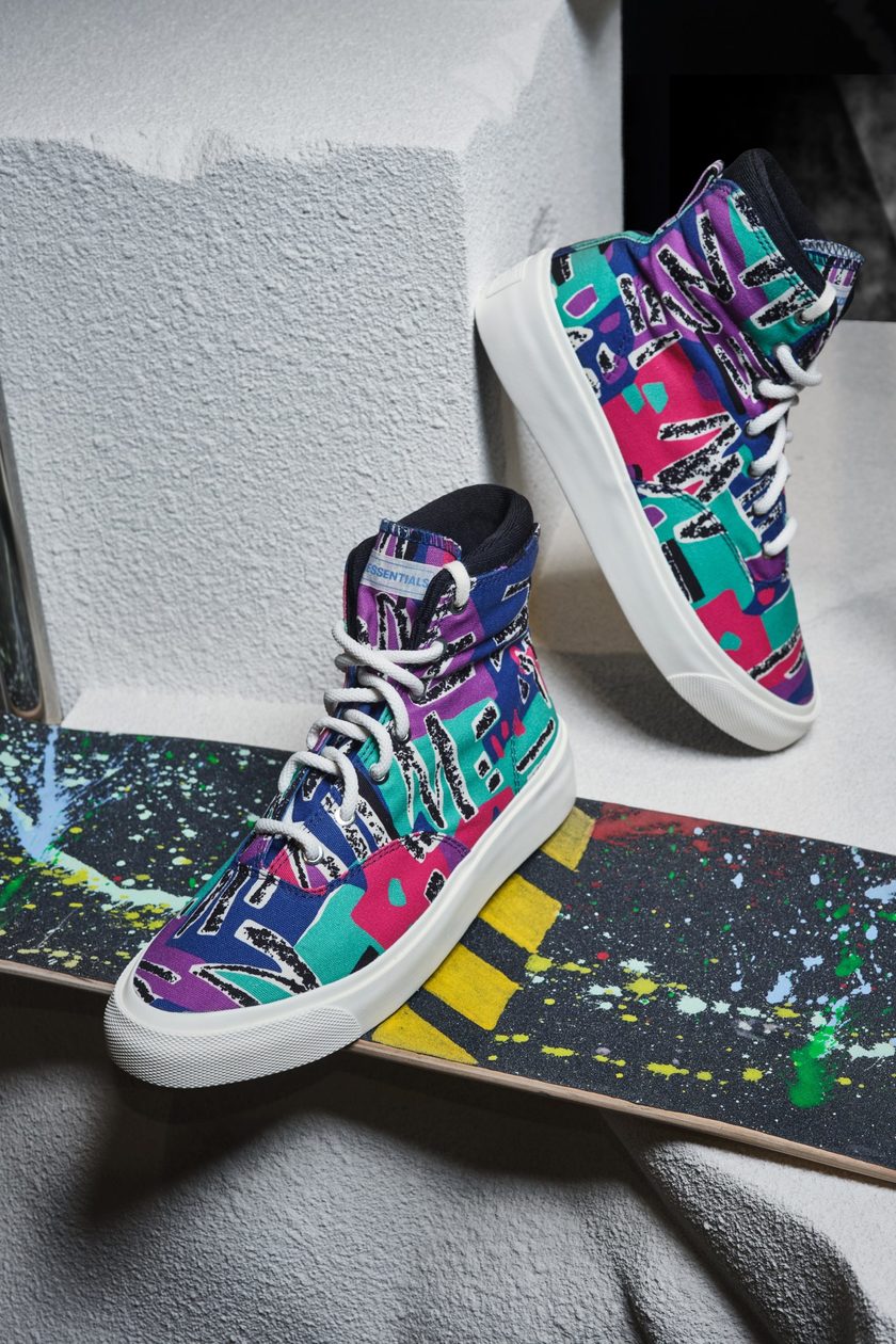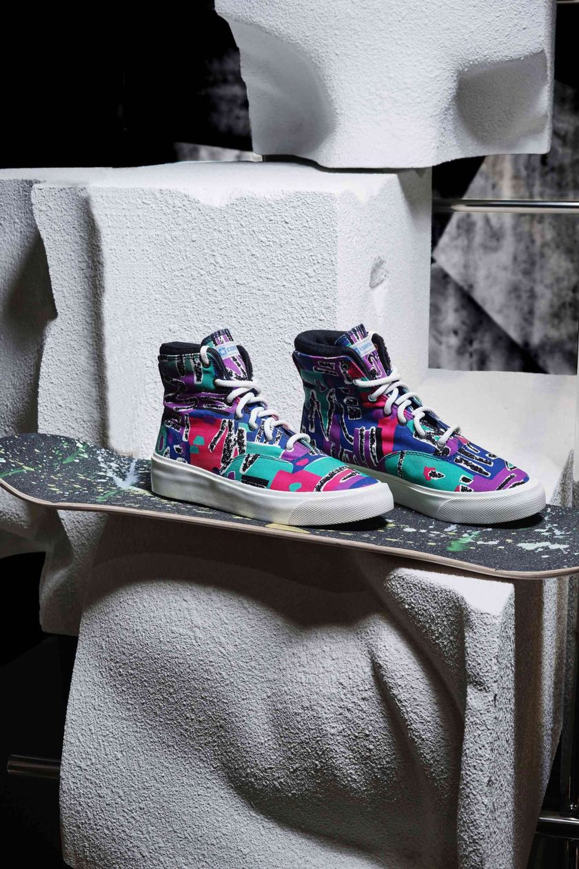 而这一设计实际上是致敬了经典,早在 1986 年 Skidgrip 就曾迎合时尚,在鞋面注入了当时颇为流行的图案印花。