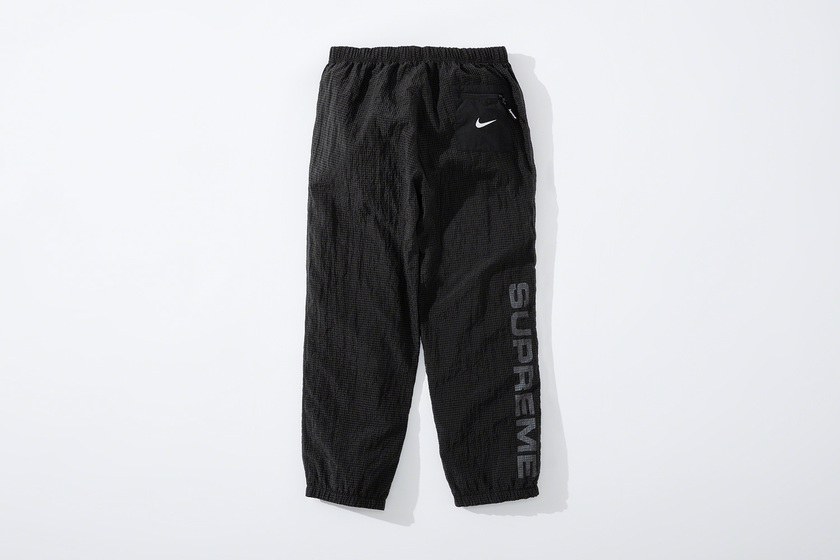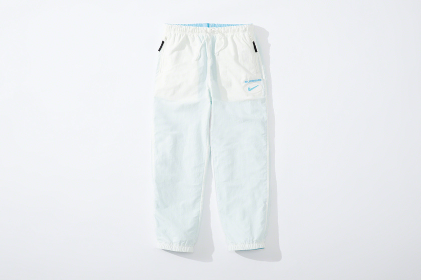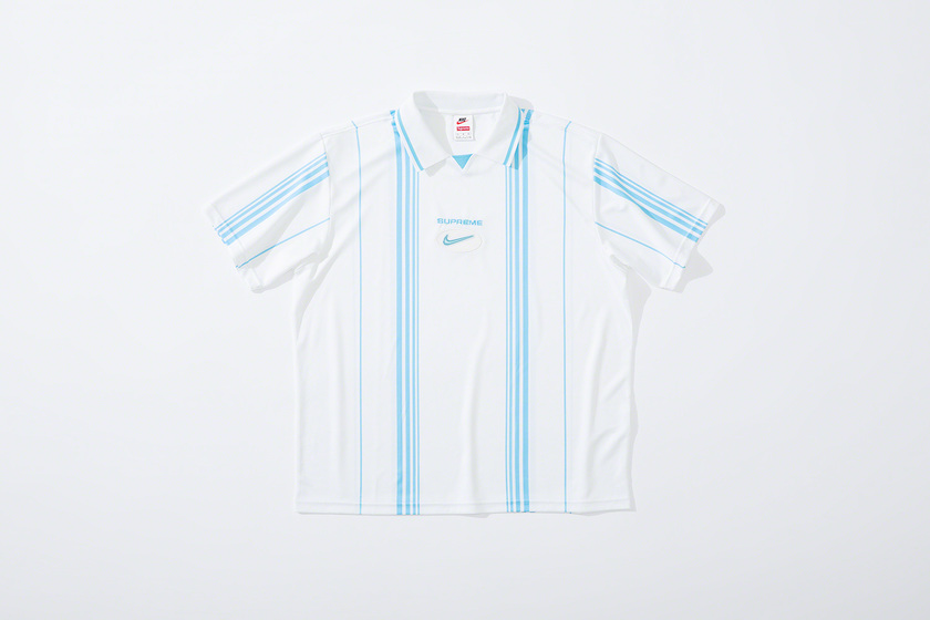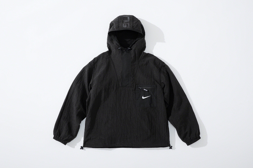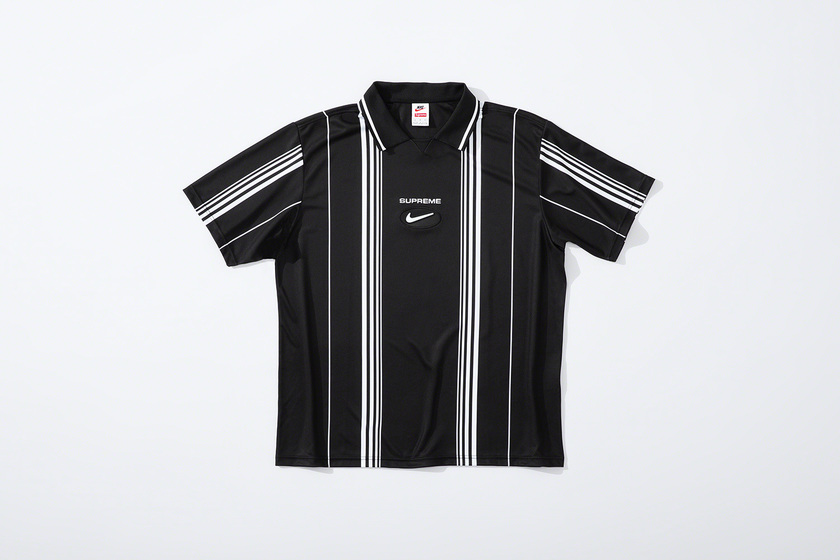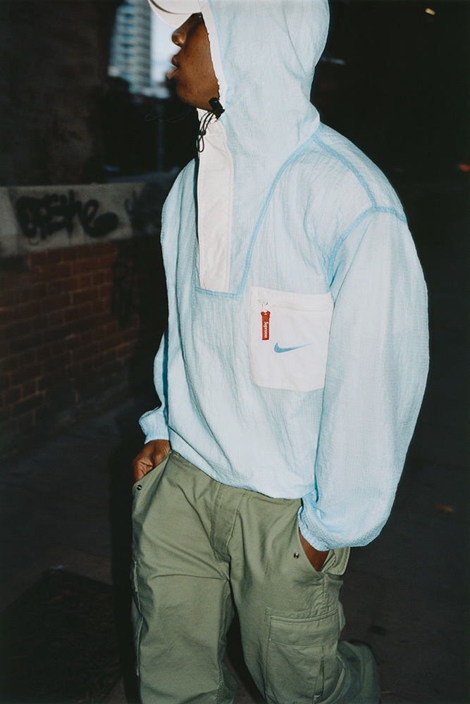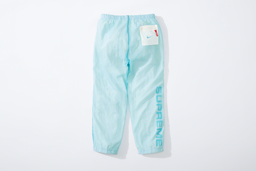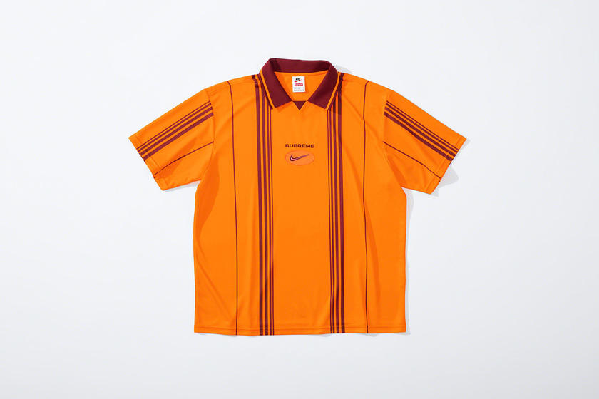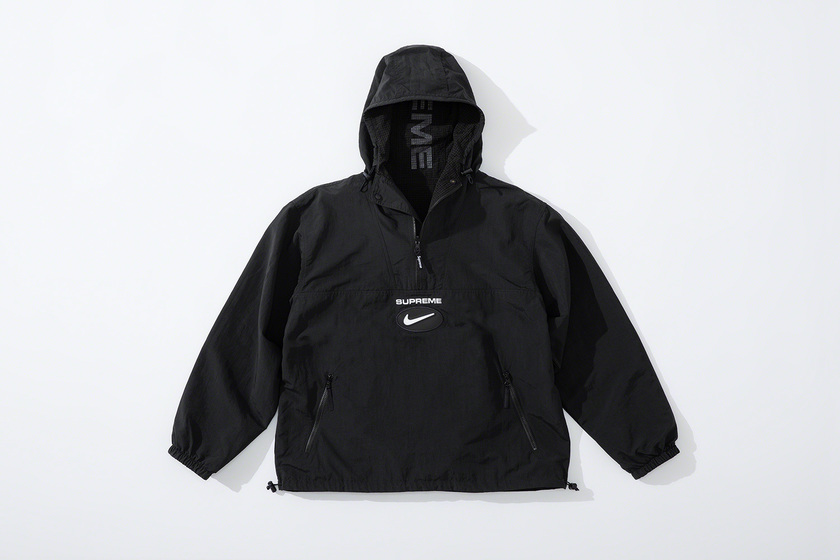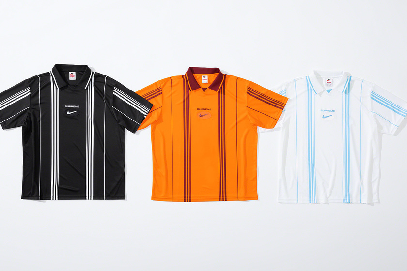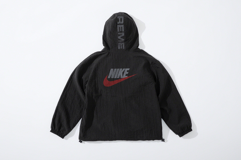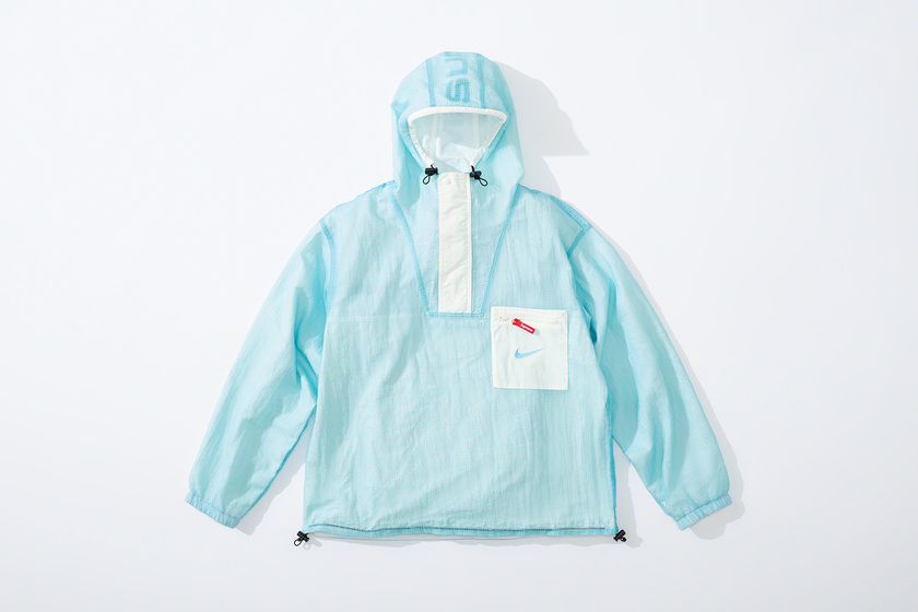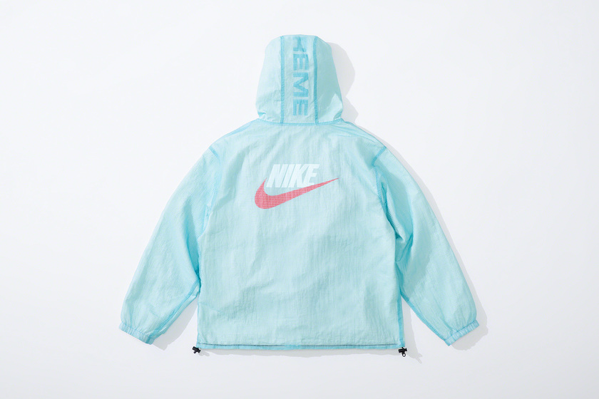 设计上延续 Supreme x Nike 一贯复古风格,其中双面 Anorak 与运动裤采用半透明尼龙防撕材质与尼龙塔斯纶面料打造,足球运动衫以 Dri-FIT 与斜纹布制造。