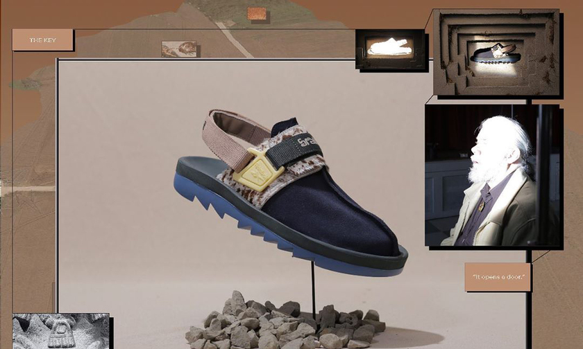 从海报中可以看出,本次设计灵感来自考古学, Pump Court 和 Beatnik 两款设计仿佛考古文物,带我们开启跨纬度旅行的大门。 Brian Dead 极具辨识度的印花与标志性配色的融入,让两款鞋的视觉效果更为独特。