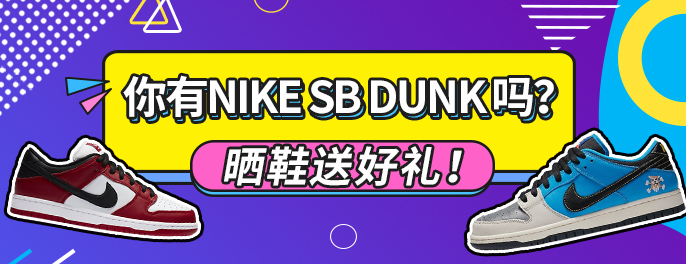 晒晒你的Nike SB Dunk 鞋款,并@get管理员,关注并添加话题#这双球鞋很好看#,即可参与!