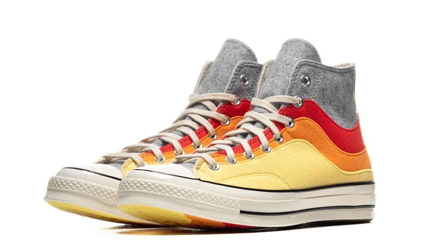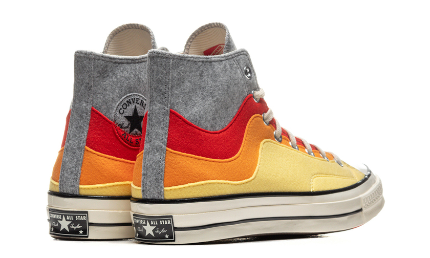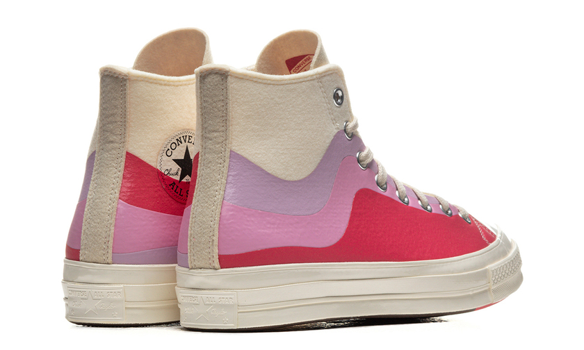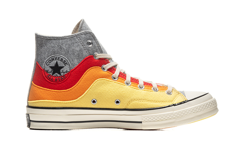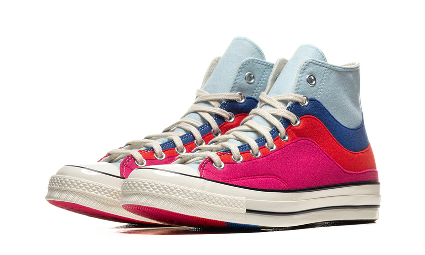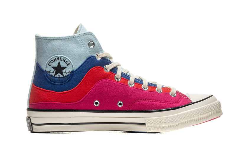 CONVERSE 在近期为Chuck 70 Hi鞋型推出了全新的Easter Felt复活节主题配色,鞋面采用多色拼接的波浪纹设计和Air Max 95相似。整个鞋身的鞋面都采用毡毛材质呈现,因此质感相当出色非常适合在秋冬季上脚,回头率十足。喜欢的朋友可以关注一下,该系列将于10月6日正式发售。
