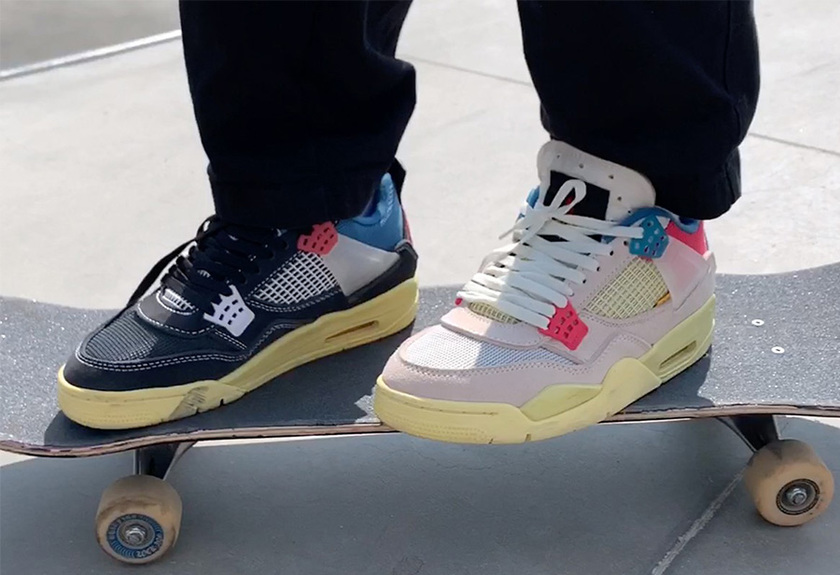 因经常用当前最具话题性的重磅鞋款来滑板实战而备受关注的知名滑手 Erik Arteaga ,近期又上脚了狠鞋用于实战,还是以 Union x Air Jordan 4 的「Off-Noir」和「Guava Ice」配色组成的鸳鸯球鞋。