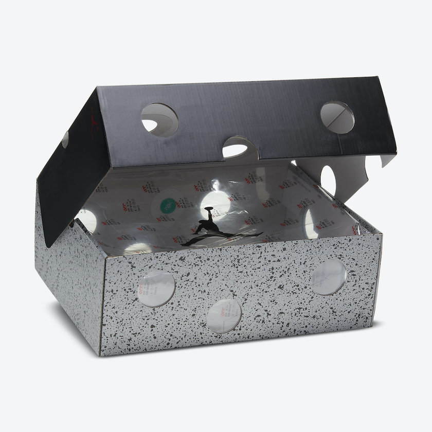 另外,这款配色的鞋盒延续镂空设计,随鞋附赠红白黑三幅鞋带,赋予玩家更多搭配可能性。