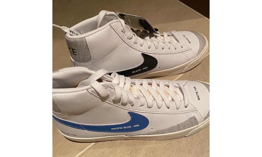 而近日,有网友发现藤原浩在社交平台中晒出了一款神秘全新 Nike Blazer Mid 。这款 Blazer Mid 以白色皮革为主打,鞋侧 Swoosh 采用藤原浩标志性黑蓝色调点缀。此外,鞋头、鞋侧以及后跟部分均标有特殊代码细节,虽然没出现闪电 logo ,但整体风格符合藤原浩一贯设计。