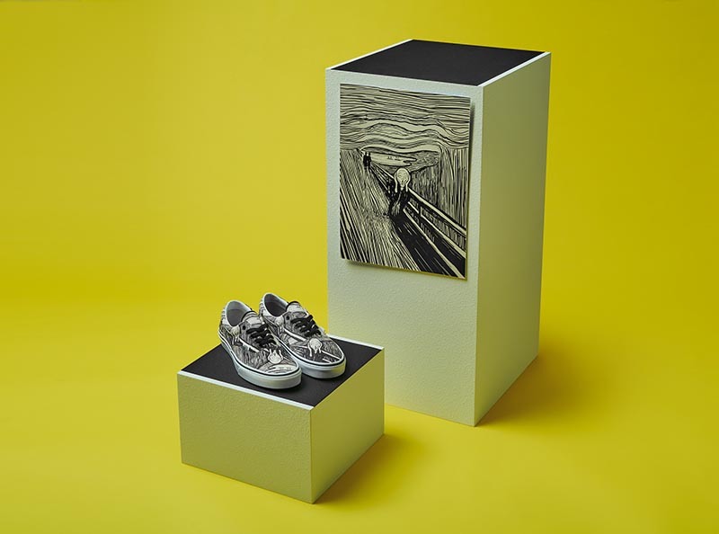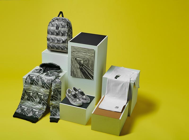 在设计上依旧以艺术作品主打,Edvard Munch 爱德华·蒙克最著名的作品《The Scream》,ackson Pollock 杰克逊·波洛克《One: Number 31》,以及艺术家 Popova 帕波瓦《Untitled》作品等等的注入,使得单品拥有强烈的艺术气息和街头潮流感。