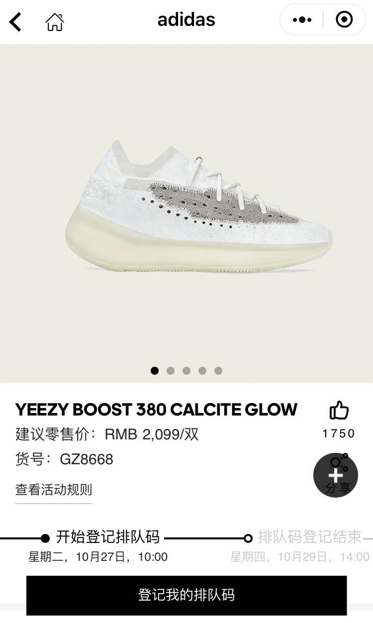 小程序登记开启!第一款夜光 Yeezy 380 来了,不过发售价...