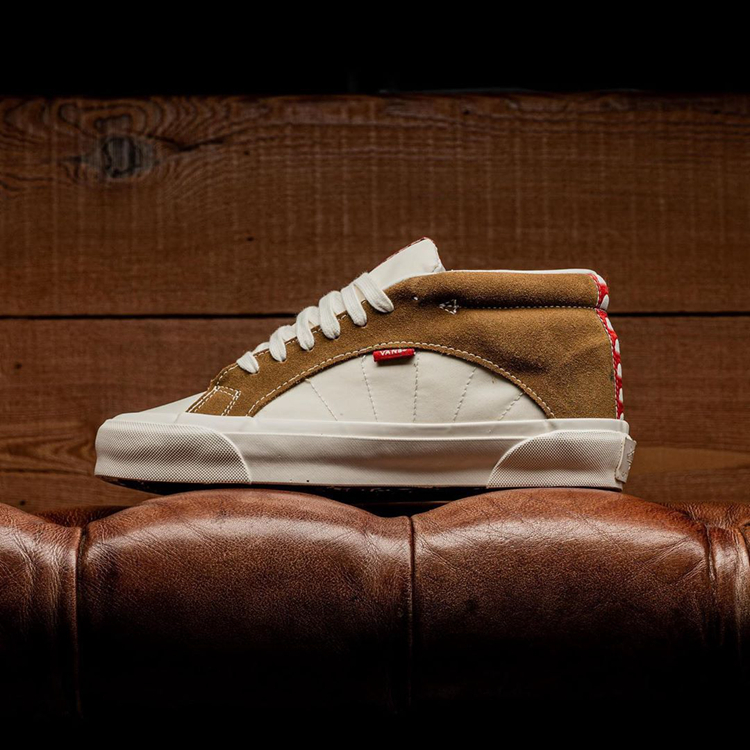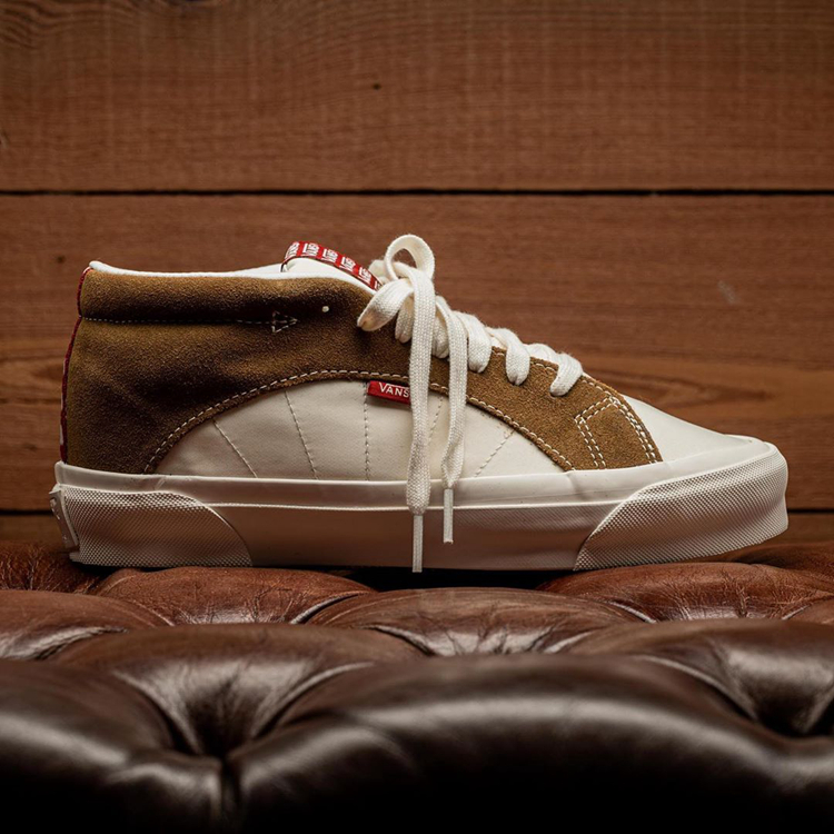 美籍日裔艺术家 Taka Hayashi 近日又与 Vans 合作打造了全新联名鞋款。鞋款以米白色皮革与深棕色麂皮拼接而成,点缀红色 Vans 标签以及后跟细节,整体层次丰富,视觉复古又极其吸睛。外底处,红白黑设计则极具艺术氛围,让鞋款在细节处也能惊艳无比。目前这款联名已在海外正式发售,发售价为 $ 110 美元,喜欢的玩家关注一下。
