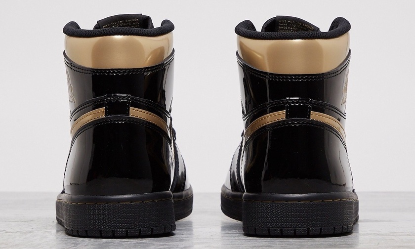 今年以相似配色方案,品牌还将带来一款高帮黑金漆皮 AJ 1 。此番这款配色的最新实物细节照又在网上释出了,打算入手的朋友先看看实物细节吧~