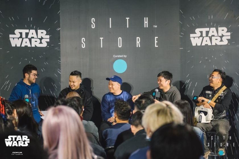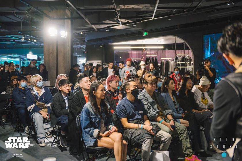 此次的 Panel Talk 围绕「加入黑暗面」为主题进行讨论,小白作为资深潮流行业市场部总监,Mark Mak 以其运动潮流行业的专业身份,Sean Hung 从潮流生活角度出发,以及南方战士、机车侦查猫专业的星战文化储备展开了别有趣味的行业交流。本次 Panel talk 中, 4 位嘉宾都分享了个人对于《星球大战》系列的情怀与故事。