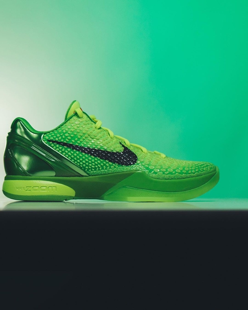 按照顺序Kobe 6 Protro将会是明年的科比签名鞋复刻鞋款,近日网上也陆续曝出了将于明年复刻的配色,其中包括一款 2010 年的圣诞配色 Kobe 6 “Grinch” 。