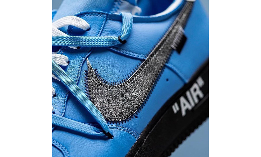 全鞋细节与 “MCA” 几乎一致,延续了 MCA 的蓝色还加持 OW 标志性解构细节。不同之处在于鞋带系统采用了更浮夸个性的双鞋带设计,搭配银色 Swoosh ,黑色外底以及后跟白色细节,潮流属性炸裂。