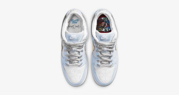 这款联名是 StrangeLove 创始人兼艺术家 Sean Cliver 今年与 Nike SB 的第二款合作,由于画风与情人节 Dunk 相似而被网友称为“情人节 2.0”。