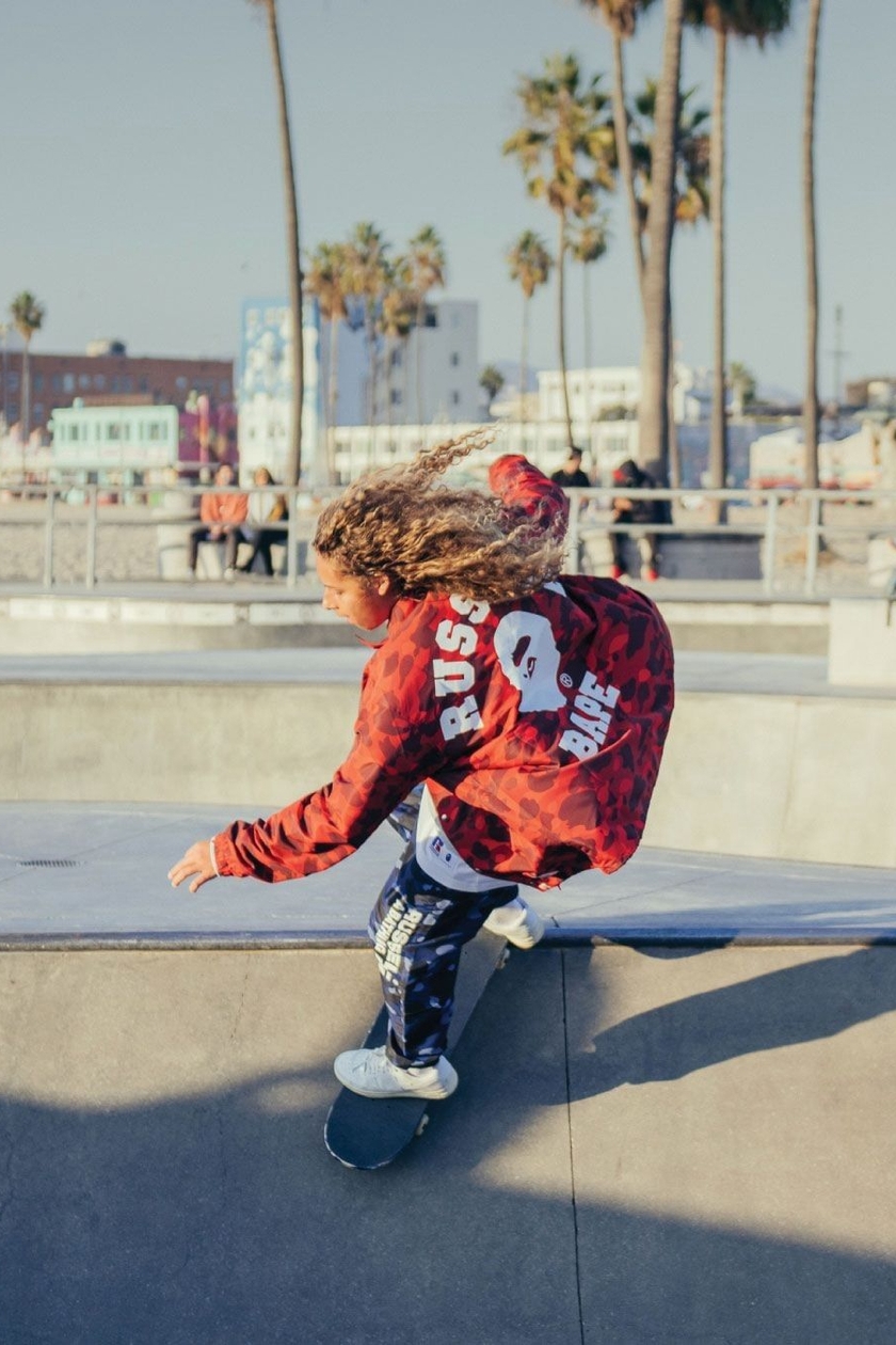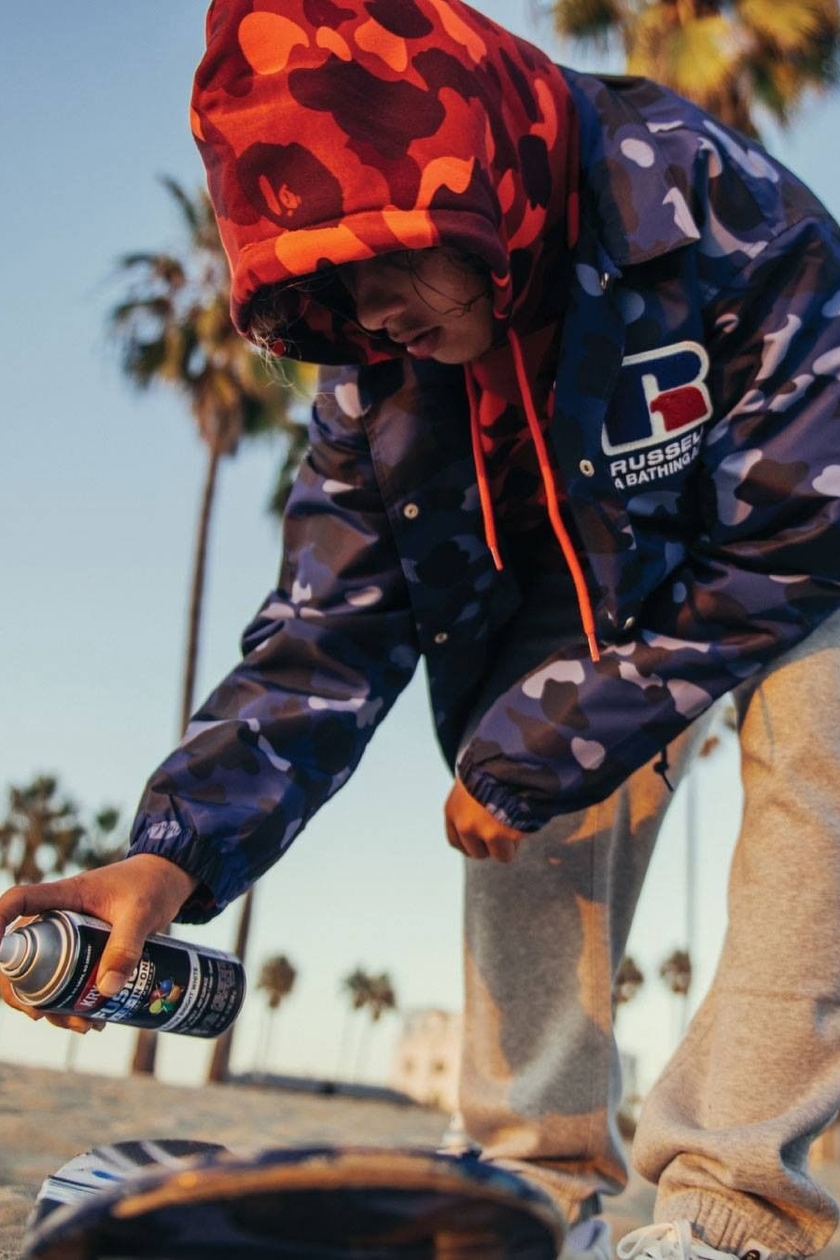 携手美国百年经典运动品牌 Russell Athletic ,BAPE 推出了一系列别具特色的联名系列。系列以 20 世纪 80 年代的 Hip-Hop 和街头滑板文化为创作核心,从嘻哈黄金年代盛行的色彩鲜艳、宽松、随性的运动着装风格中汲取灵感,带来了帽衫、外套、长裤等单品。