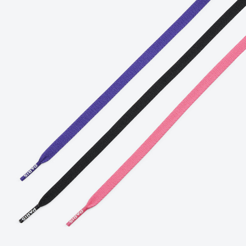 这款全新联名以白色麂皮与黑色磨砂皮革拼接主打。亮点设计在于 Swoosh 、飞翼、鞋帮细节以及后跟联名 logo 处的反光幻彩设计,通过角度转换能看到不同的蓝紫色调,吸睛度爆棚。