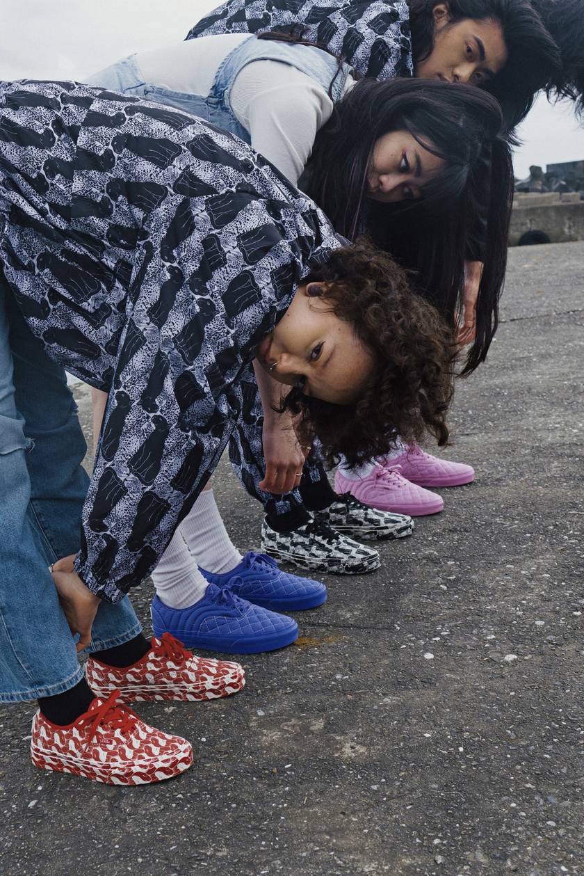 由华人摄影师钟琳掌镜拍摄, Vans Old Skool 以抽象印花图案贯穿鞋身,红、灰色调渲染,艺术感与辨识度极强。 Authentic QTL 以蓝、粉双色立体菱格纹呈现,有种“时尚棉鞋”既视感,不知潮流玩家们会不会喜欢。后跟 Opening Ceremony 标志 logo ,表明身份。