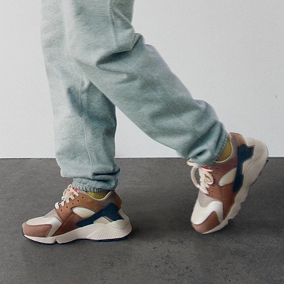 这次采用的又是一款偏冷门的鞋型——Nike Air Huarache ,共带来两款配色“Desert Oak”以及“Dark Olive”。“Desert Oak”以深浅不一的棕色拼接,“Dark Olive”以低饱和黄绿色调碰撞呈现。