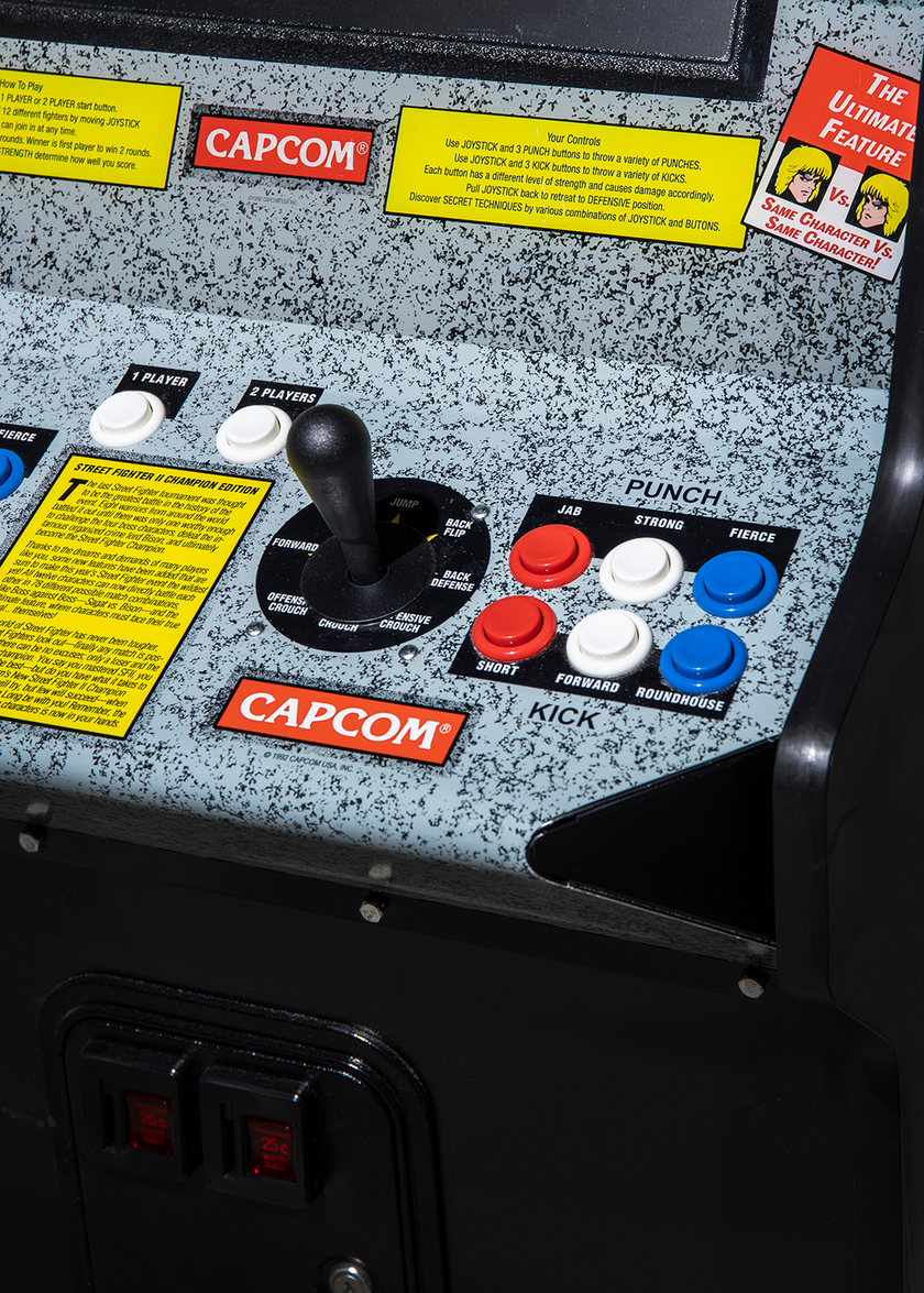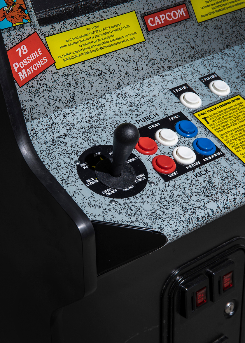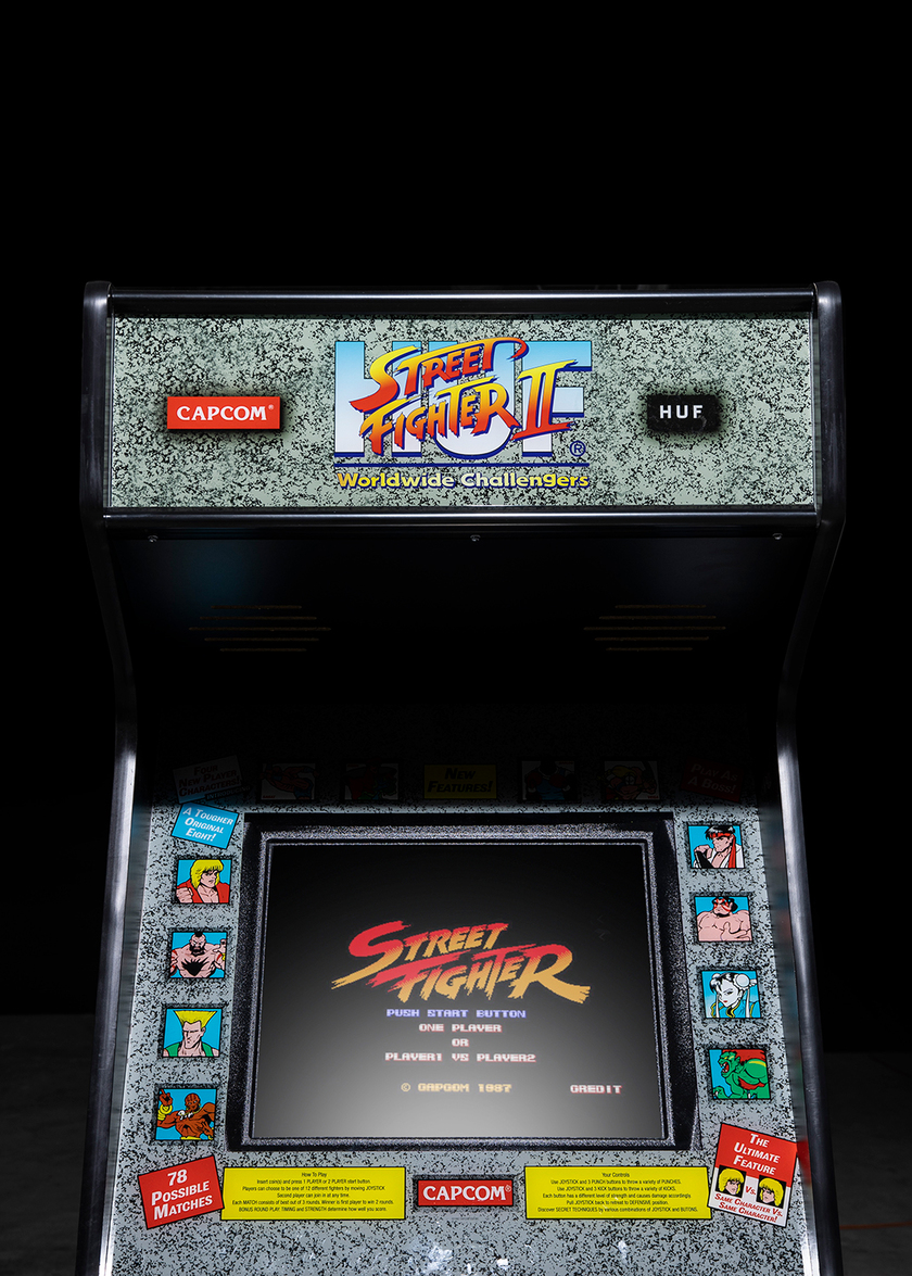 系列设计元素包括街头霸王人物布兰卡的电雷特殊招式所创造的标志性三角形,以及其他街头霸王人气角色印花。单品包括教练夹克、帽衫、衬衫、T 恤、帽款、滑板等,HUF 还特别为该系列制作了一台特殊的街机。