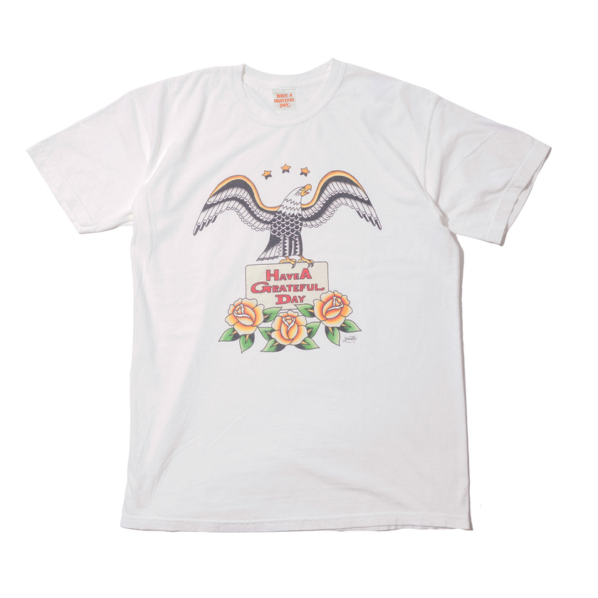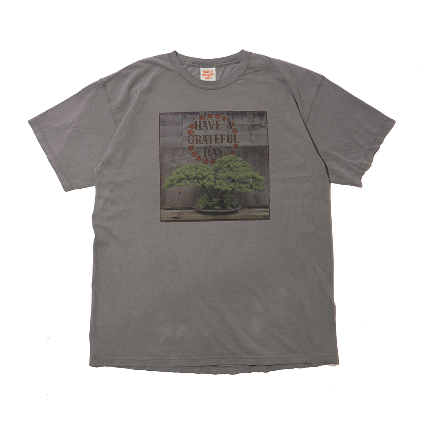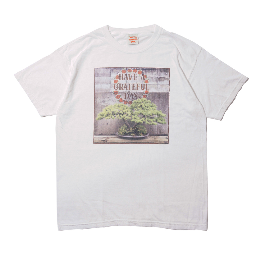 系列带来多款 T 恤,均以白色和灰色为基调,点缀 YUSUKE HAMAMOTO 绘制的传统纹身图案,盆景作品照片,以及 HAVE A GRATEFUL DAY 设计师 YUSUKE KOMORI 的画作呈现。