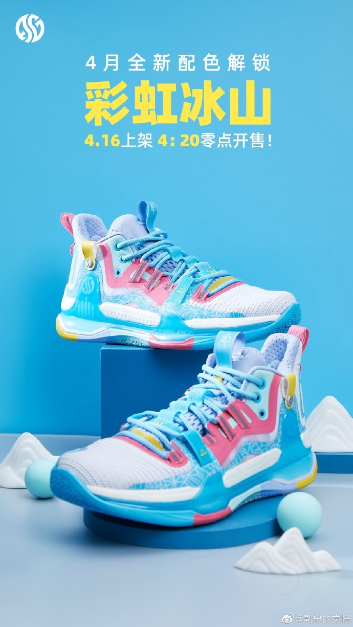 近期吸引了不少鞋迷关注的 361° AG1 PRO 鞋款,将于本周发布新配色了。新配色名为“彩虹冰山”,与此前曝光过实物的被网友称为冰淇淋配色的 361° AG1 PRO 颇为相似。