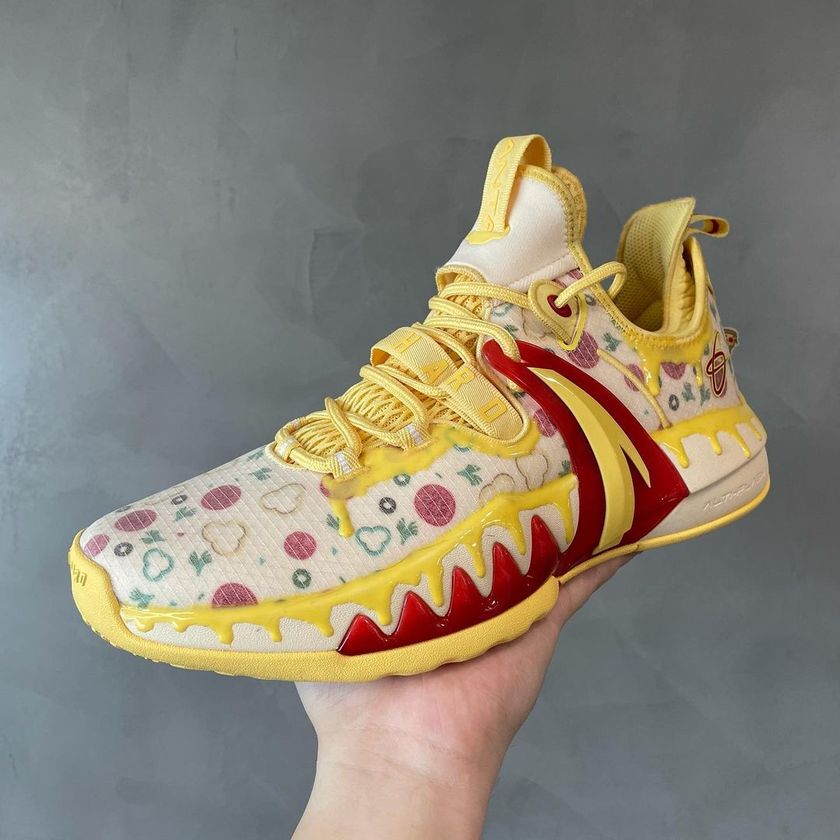 最近 ANTA 海沃德个人战靴 ANTA GH2 新配色频出,让人目不暇接。继淘金热配色之后,此番又有一款玩味十足的“PIZZA”配色在网上曝光了,即将正式发售。