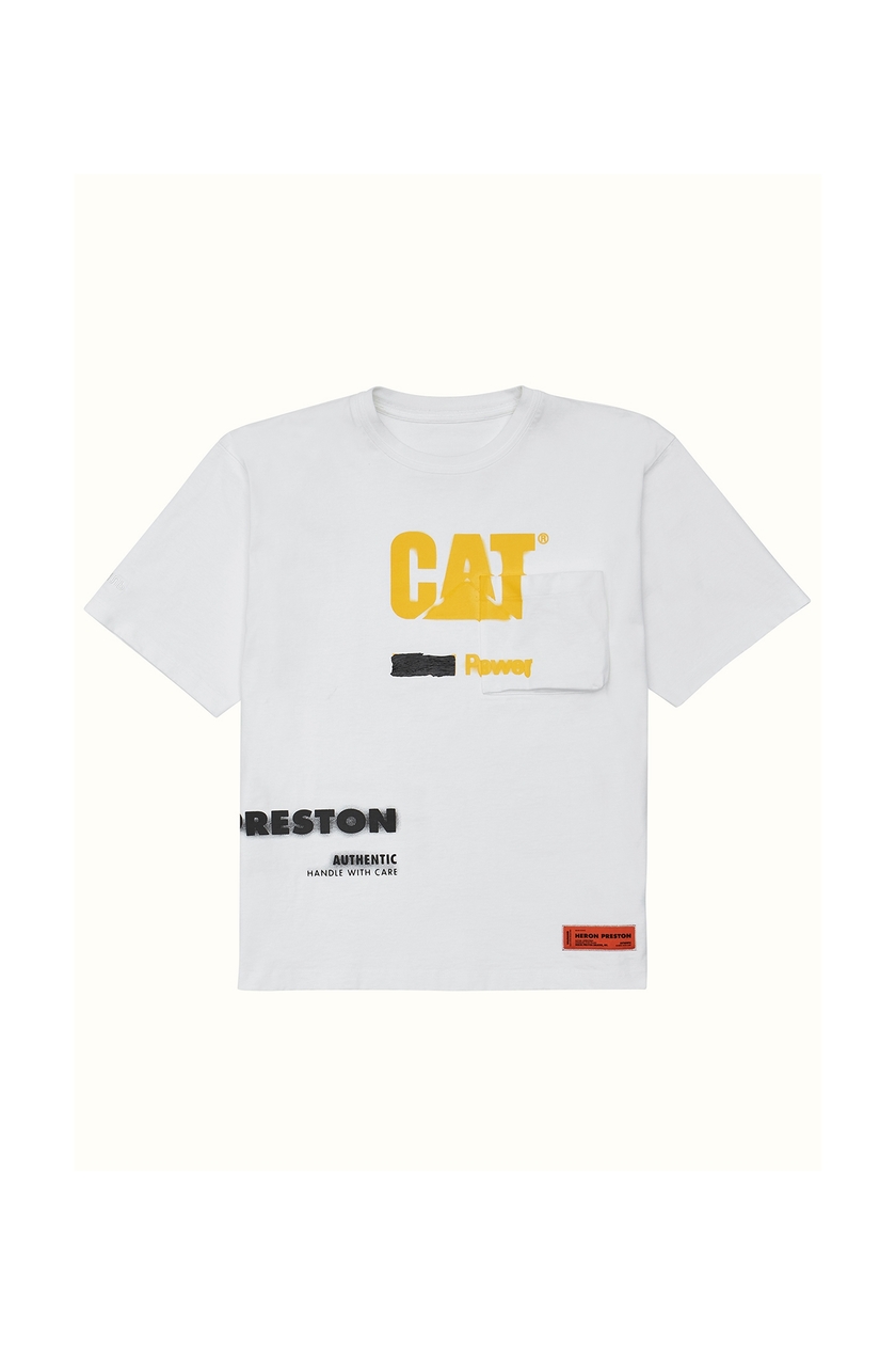 合作以“CAT Power”为主题,融入了撞色设计、涂鸦印花等 Heron Preston 代表性的时尚美学,并加持高辨识度橙色 logo 凸显联名身份。