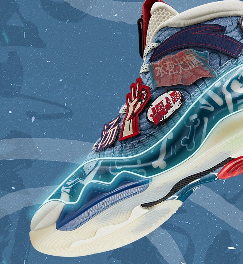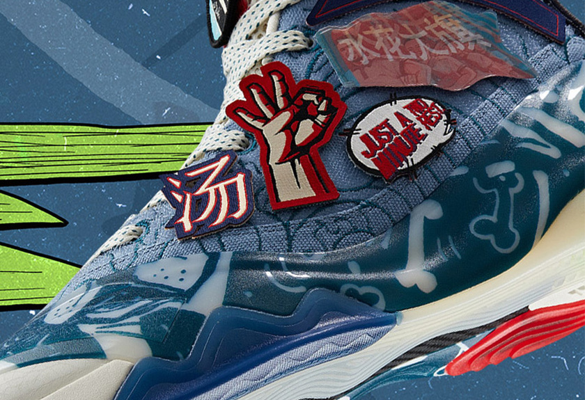 鞋面上玩味十足的魔术贴设计,让玩家可以自己粘贴各种带有汤普森个人元素的图案。