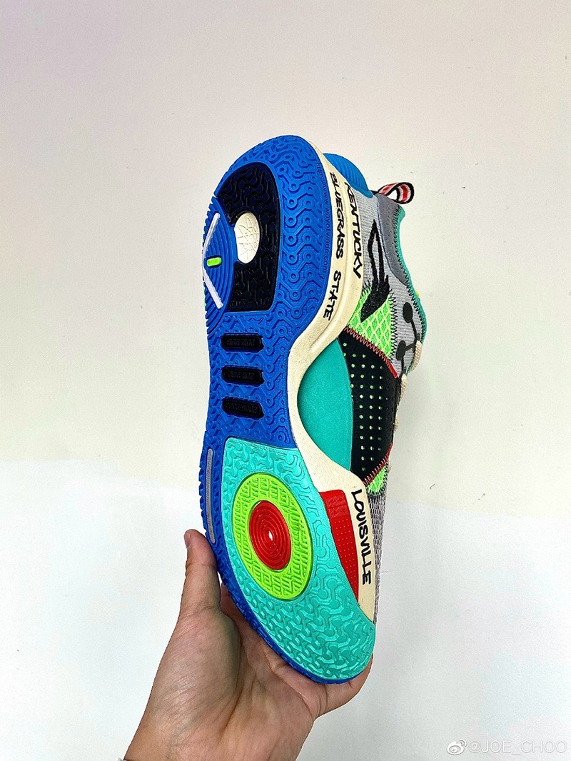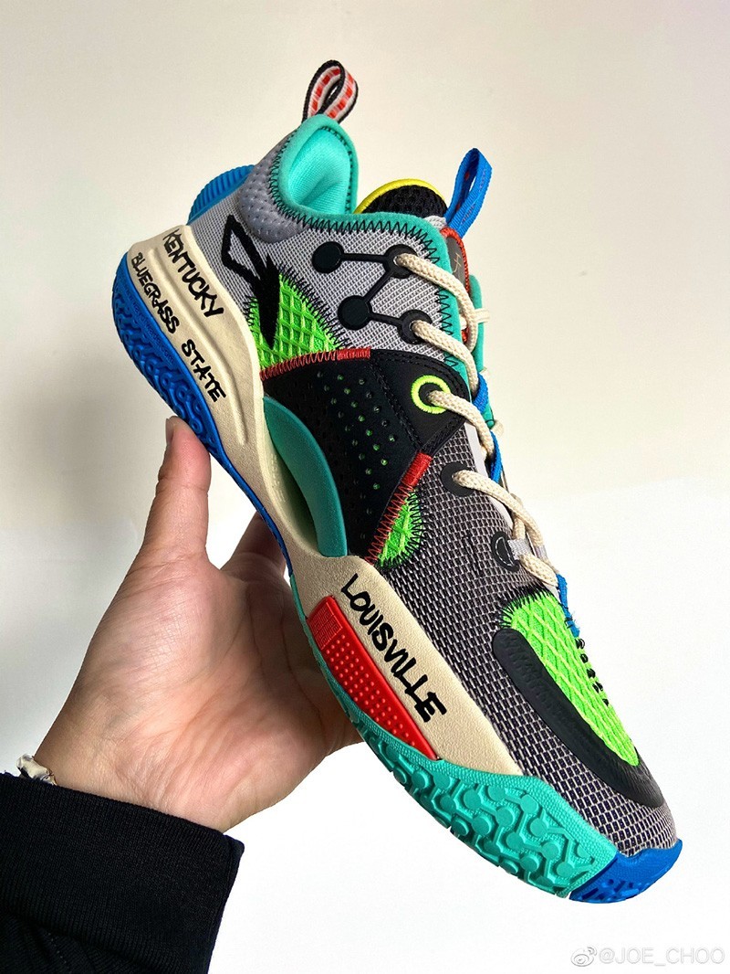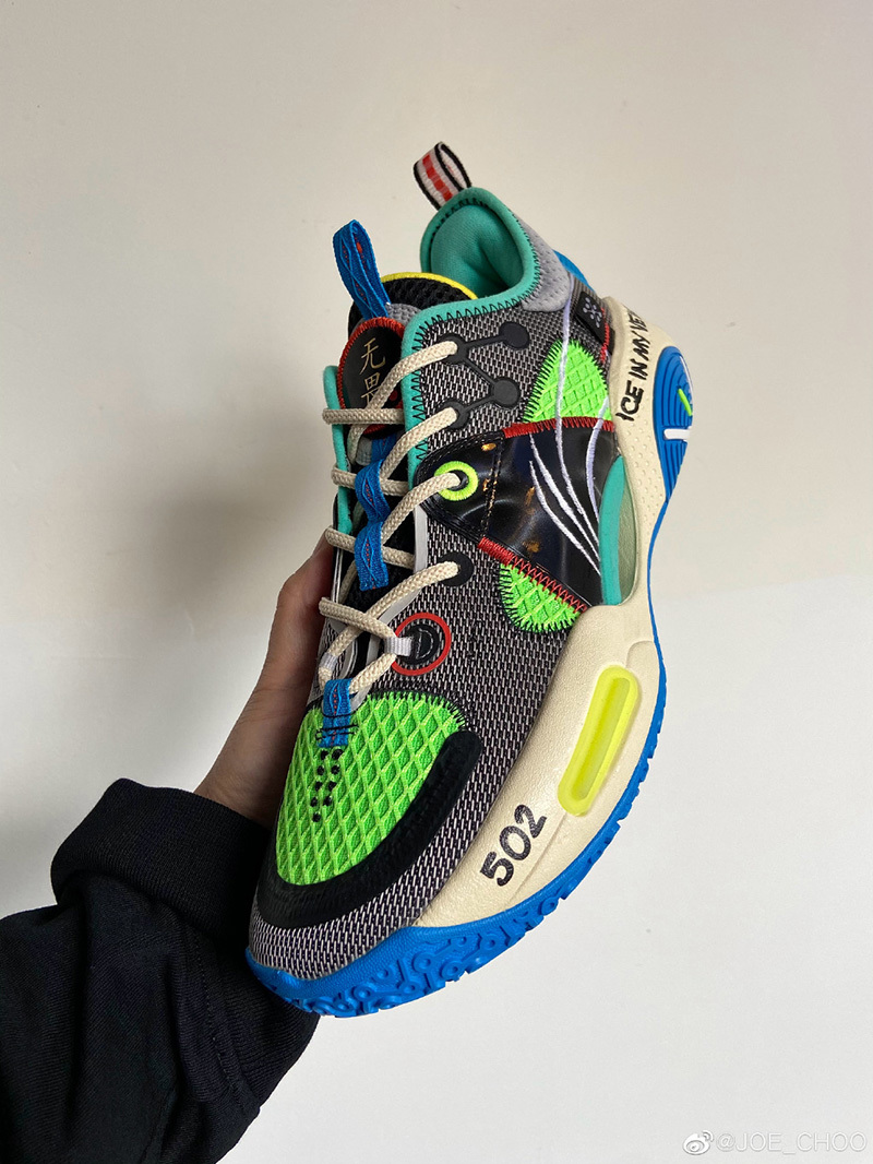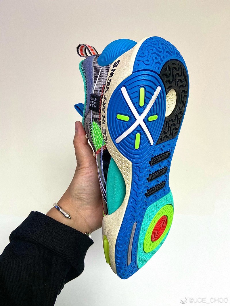 这款配色采用多色拼接鞋身示人,黑、绿、蓝、红、黄等色调搭配,呈现出抢眼的吸睛效果。