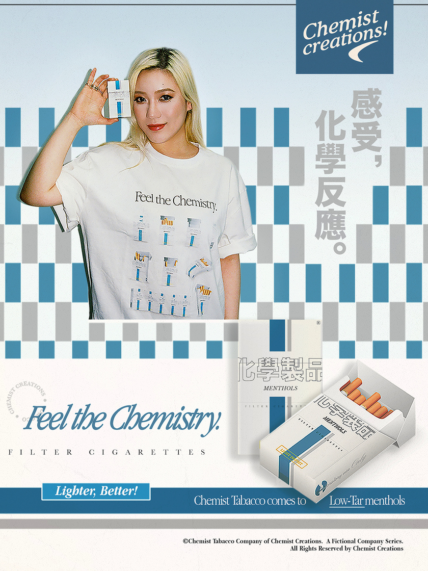 本次系列在设计上以 Chemist Creations 各式创意变形的 logo ,醒目的标语等元素,彰显品牌日式黑色幽默。