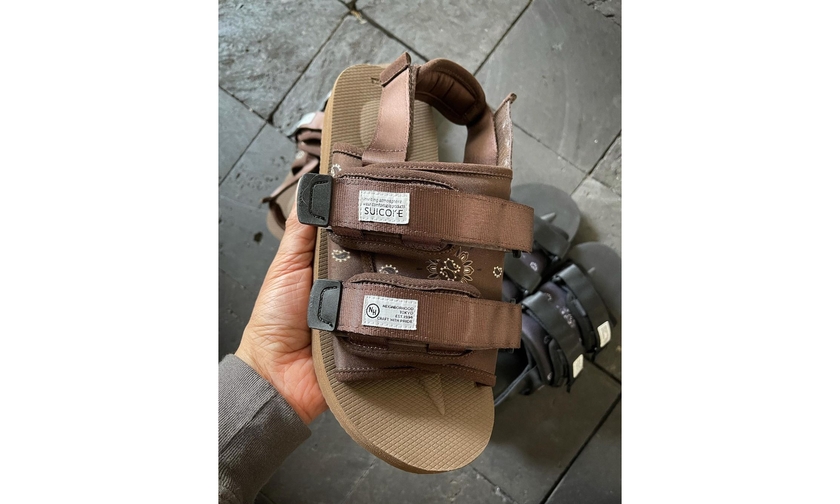 可以看到,本次双方以经典的 Sandal 拖鞋型号为蓝本重塑,共带来黑色、卡其两种配色。腰果花注入,搭配机能感十足的魔术贴卡扣设计,潮流感浓郁。