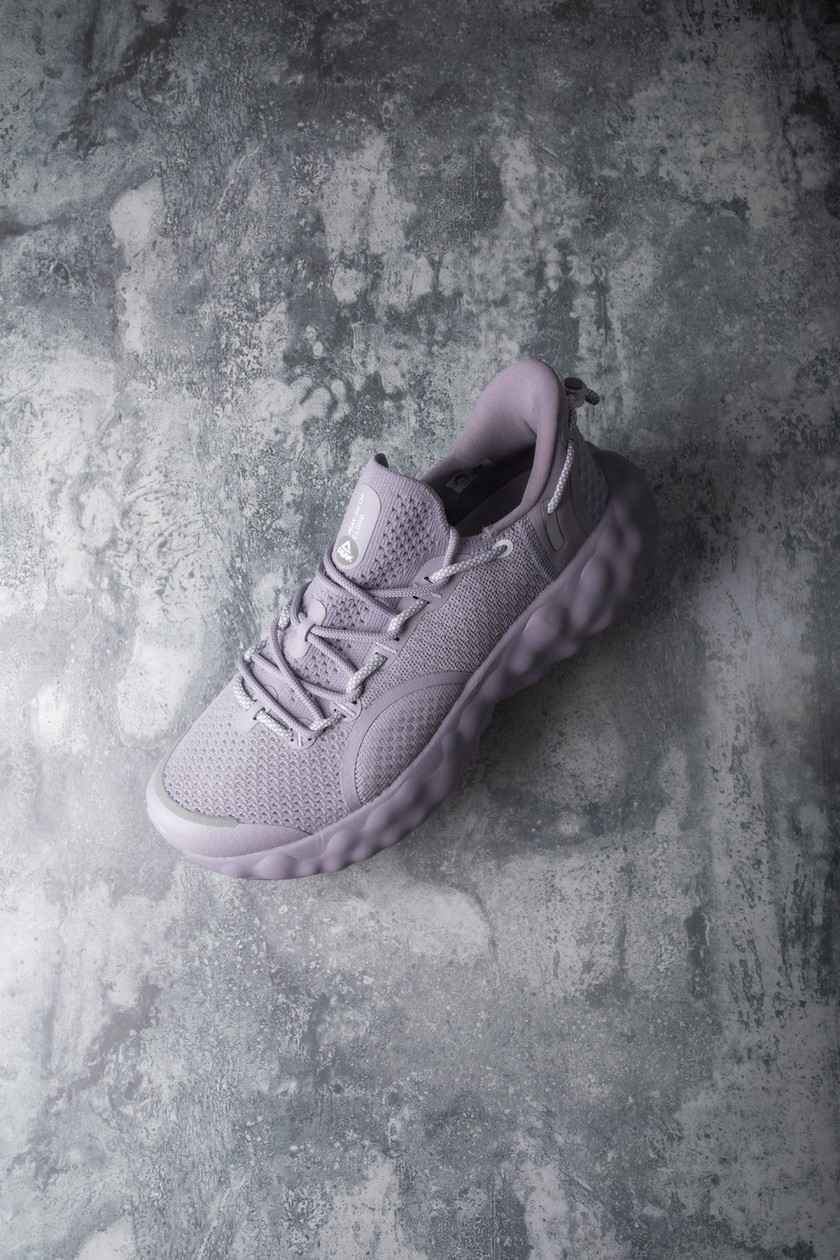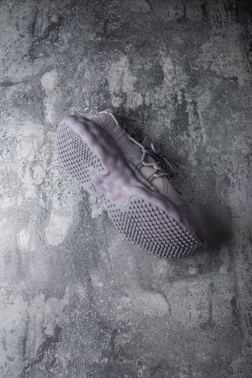 首发配色名为 “霞”, 鞋身颜色也是类似晚霞的灰色。软弹的球型中底让日常出街有绝佳的脚感。全鞋身的网面设计带来毋庸置疑的透气性。鞋面上的3M 反光纱与后跟两侧的反光贴,让整双鞋低调中带着闪耀。