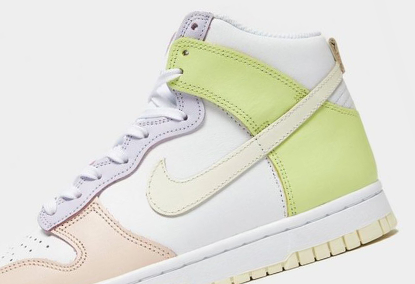 最近一款全新 Dunk Hi 官图曝光!整双鞋由白色、粉色、黄色和紫色搭配而成,小清新感十足,专为女生设计。