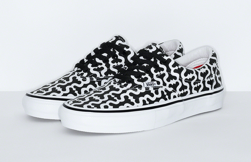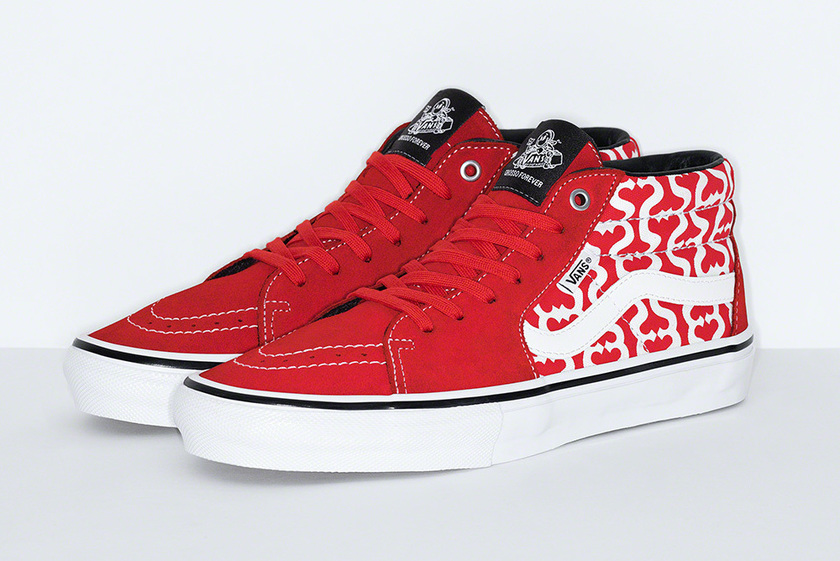 这次以 Vans 旗下的经典鞋型 Skate Era 和 Skate Grosso Mid 为基础,鞋面均大面积印有 Supreme 的 “S” 标志,看上去高调且潮流。同时每款鞋型都有红、黑、蓝三个配色,可以让小伙伴们根据自己的喜好有更多的选择。