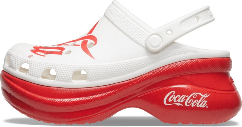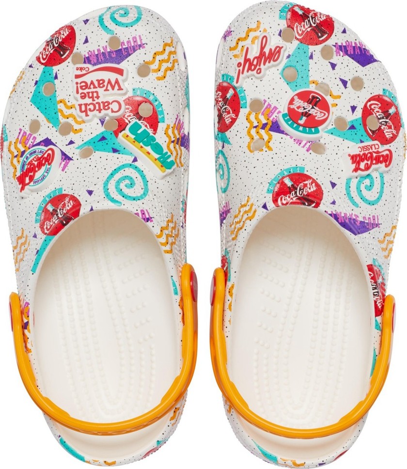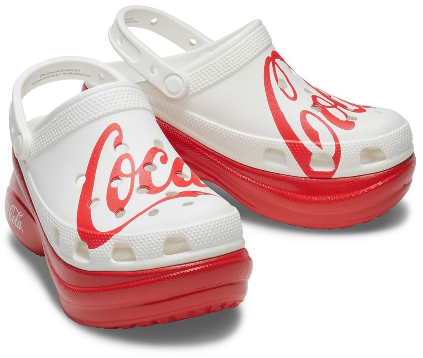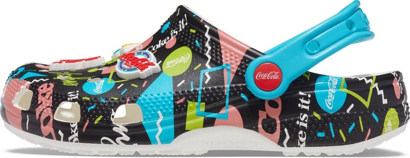 这次联名包含了两个系列鞋款,分别是 Coca-Cola Classic 和 Coca-Cola 90’s 。Coca-Cola Classic 系列又有 Classic Clog 和 Classic Bae Clog 两个版本,红白的配色和鞋身上印有的 Coca-Cola 字体图案凸显出系列的联名身份。Coca-Cola 90’s 系列则有经典克骆格和 Classic Sandal 两个版本,黑白鞋身遍布各种 Coca-Cola 复古标识显得更加时尚花哨。